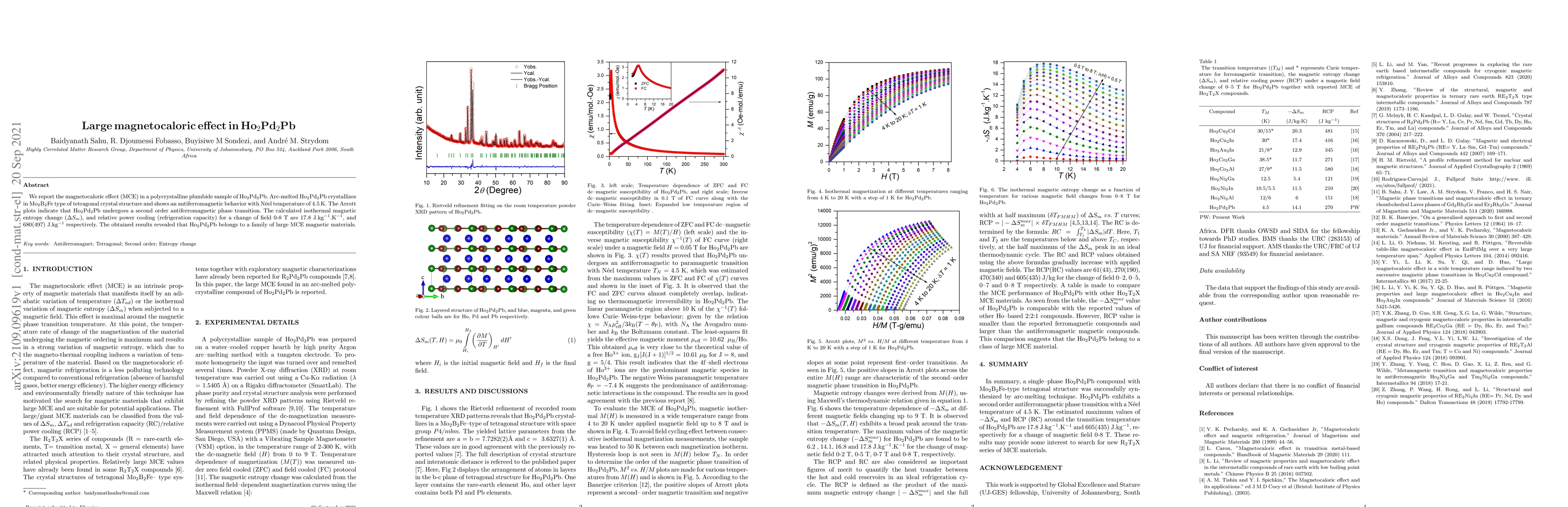 We report the magnetocaloric effect (MCE) in a polycrystalline plumbide sample of $\mathrm{Ho_2Pd_2Pb}$. Arc-melted $\mathrm{Ho_2Pd_2Pb}$ crystallizes in $\mathrm{Mo_2B_2Fe}$ type of tetragonal crystal structure and shows an antiferromagnetic behavior with N\'{e}el temperature of 4.5 K. The Arrott plots indicate that $\mathrm{Ho_2Pd_2Pb}$ undergoes a second-order antiferromagnetic phase transition. The calculated isothermal magnetic entropy change ($\Delta S_m$), and relative power cooling (refrigeration capacity) for a change of field 0-8 T are 17.8 J.kg$^{-1}$.K$^{-1}$, and 680(497)~J.kg$^{-1}$ respectively. The obtained results revealed that $\mathrm{Ho_2Pd_2Pb}$ belongs to a family of large MCE magnetic materials.