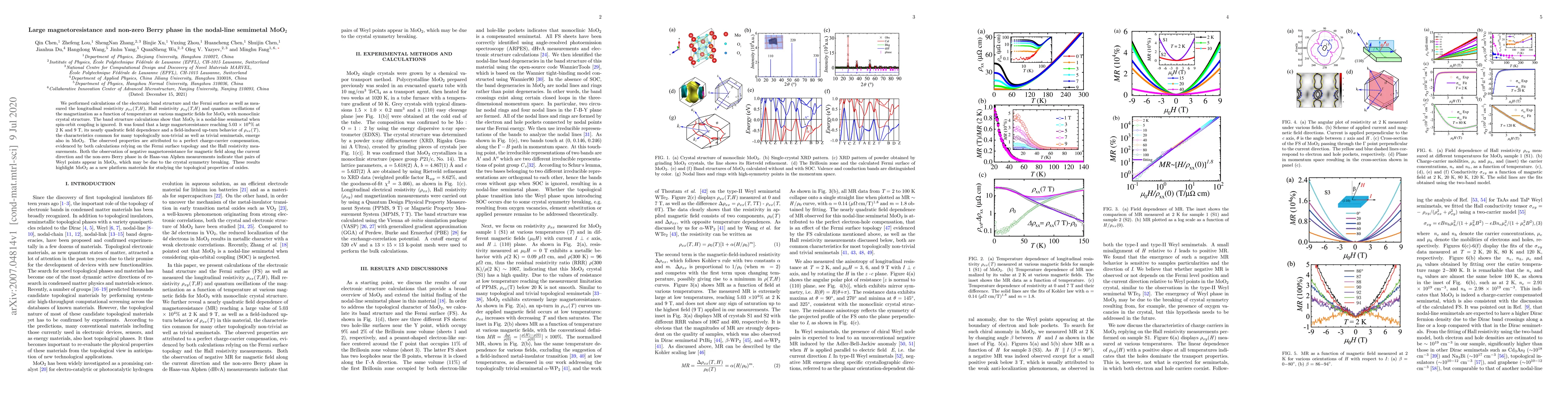 MoO2 is identified as a nodal-line semimetal exhibiting large magnetoresistance and non-zero Berry phase, indicating the presence of Weyl points likely due to symmetry breaking, making it a promising material for topological studies. The large magnetoresistance and topological properties are supported by electronic band structure calculations and experimental measurements.