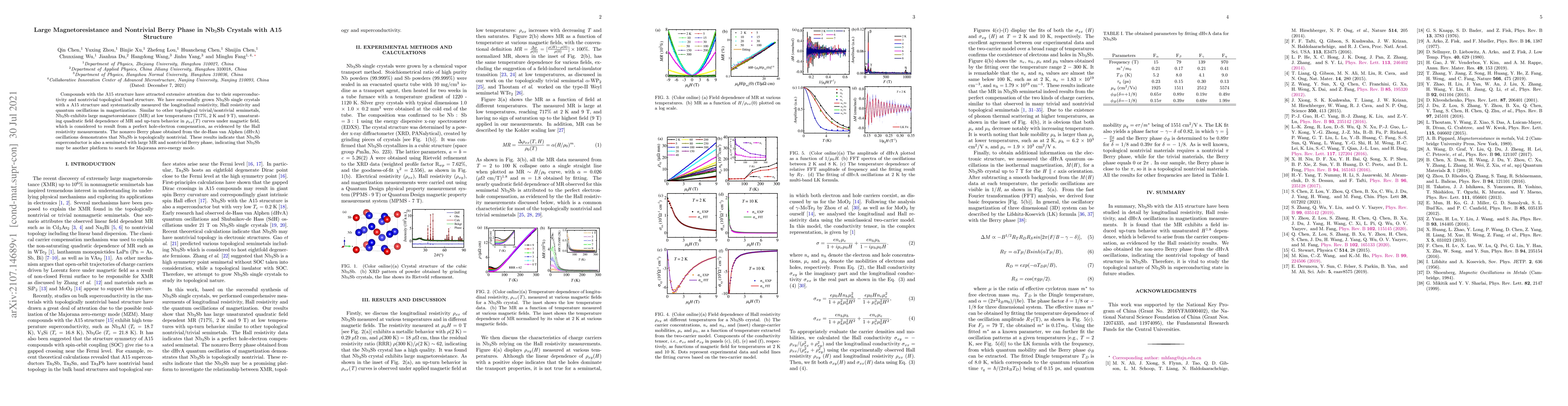 This study investigates Nb$_3$Sb crystals with an A15 structure, revealing large magnetoresistance and a nontrivial Berry phase indicative of topological semimetallic behavior. The research shows significant MR and evidence of a nonzero Berry phase from dHvA oscillations, suggesting potential for Majorana zero-energy mode exploration.