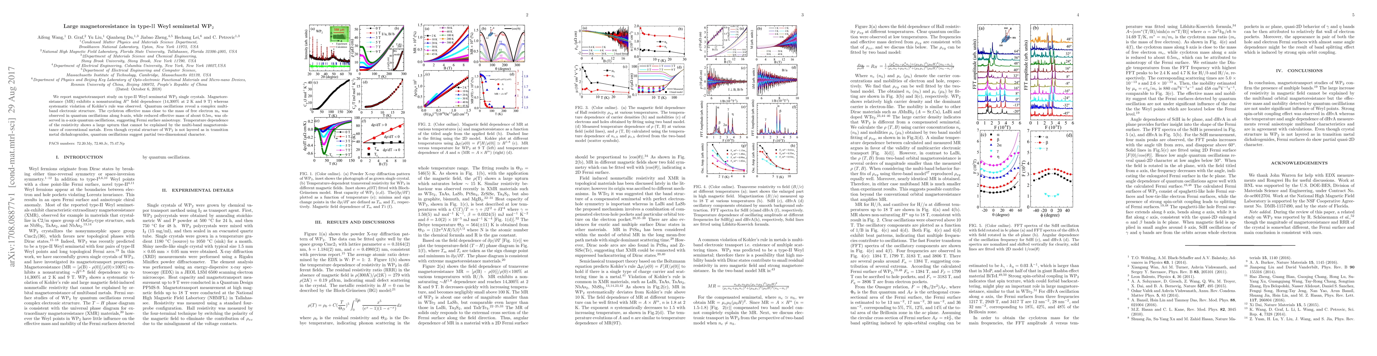 This study reveals large, nonsaturating magnetoresistance in type-II Weyl semimetal WP$_2$, showing a complex multiband electronic structure with anisotropic Fermi surfaces and an unusual temperature-dependent resistivity upturn. Quantum oscillations suggest a partially two-dimensional character despite its non-layered crystal structure.