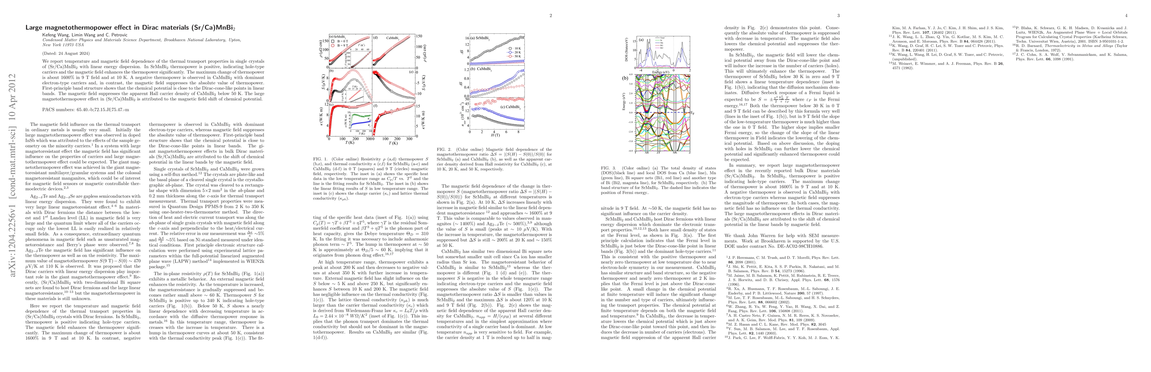 The study reveals significant magnetothermopower effects in (Sr/Ca)MnBi$_2$ single crystals, where SrMnBi$_2$ shows a substantial enhancement in thermopower under magnetic fields due to hole-type carriers, while CaMnBi$_2$ exhibits suppressed thermopower, indicating electron-type carriers, linked to magnetic field-induced shifts in chemical potential near Dirac points.