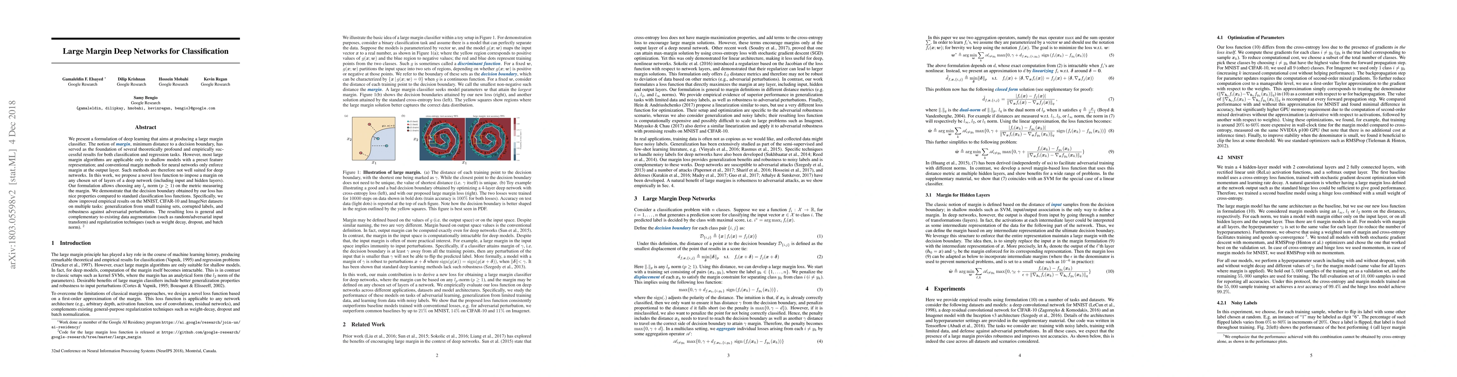This paper proposes a novel loss function for deep networks that enforces a large margin at any chosen layers, improving generalization, robustness, and performance on datasets like MNIST, CIFAR-10, and ImageNet. The method is shown to complement existing data augmentation and regularization techniques.