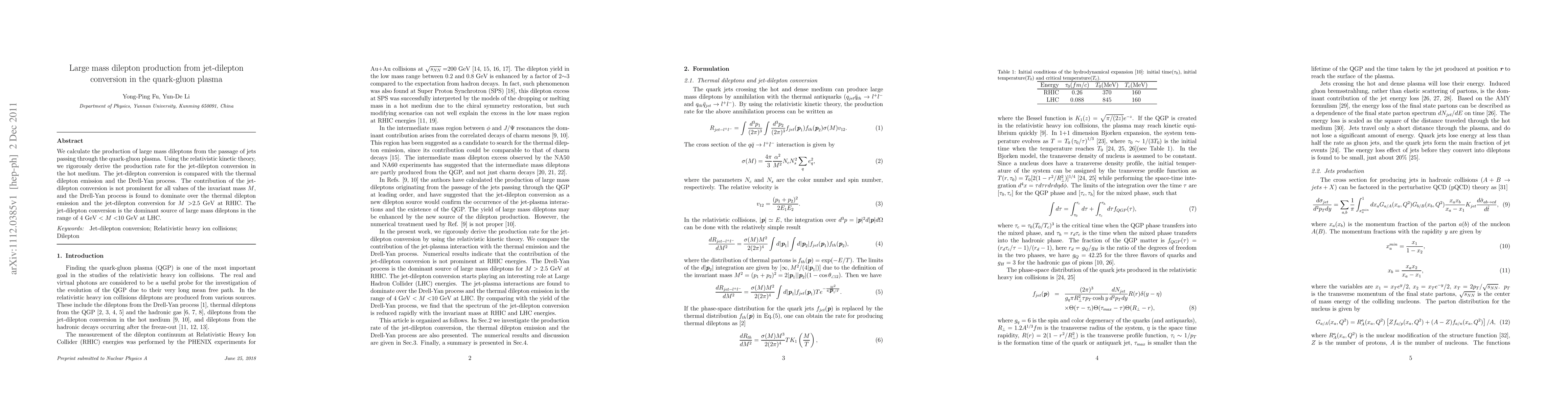 the jet-dilepton conversion for $M>$2.5 GeV at RHIC. The jet-dilepton
