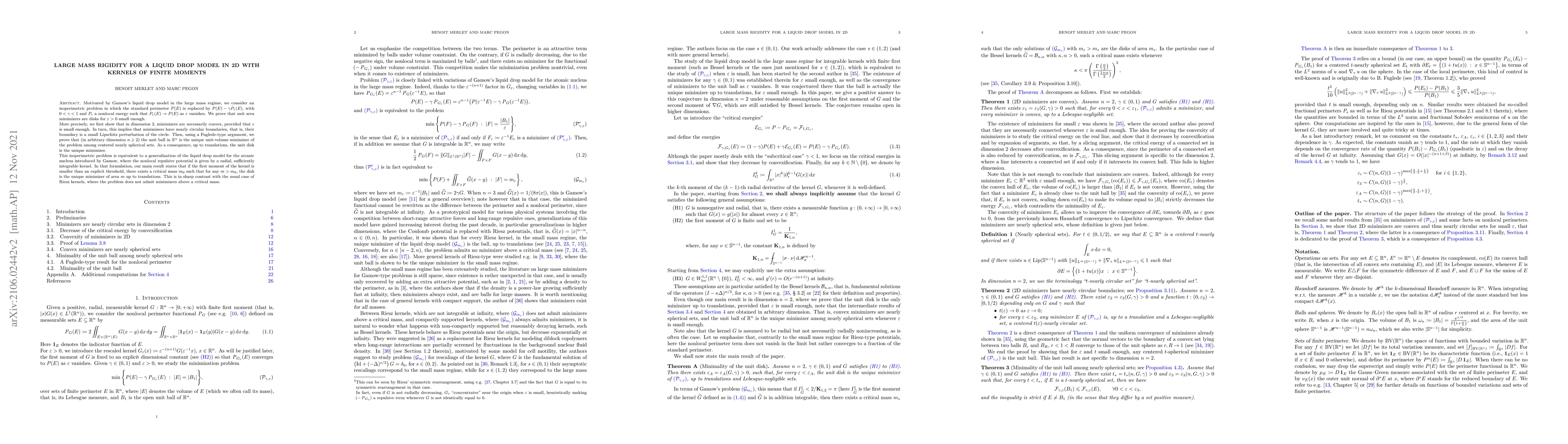 This paper investigates an isoperimetric problem inspired by Gamow's liquid drop model, proving that unit area minimizers are disks for small nonlocal perturbations. It demonstrates that in dimension 2, minimizers are convex and nearly circular, and in higher dimensions, the unit ball is the unique minimizer among nearly spherical sets.