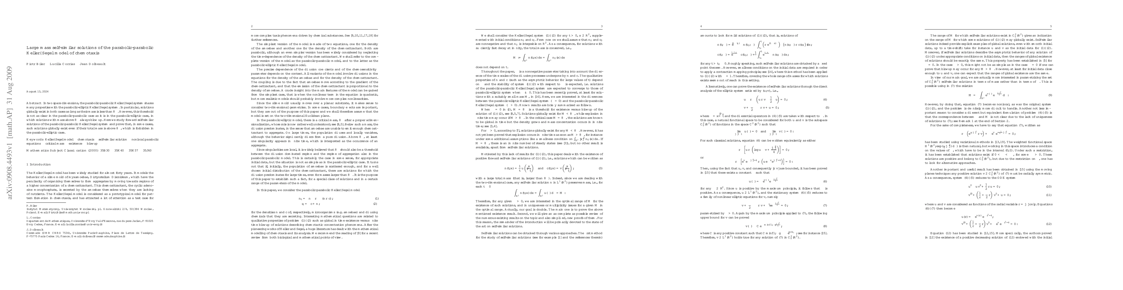 This paper investigates large mass self-similar solutions of the parabolic-parabolic Keller-Segel chemotaxis model in two dimensions, demonstrating that solutions can exist globally even when their mass exceeds the threshold of 8?, unlike the parabolic-elliptic case where such solutions always collapse.