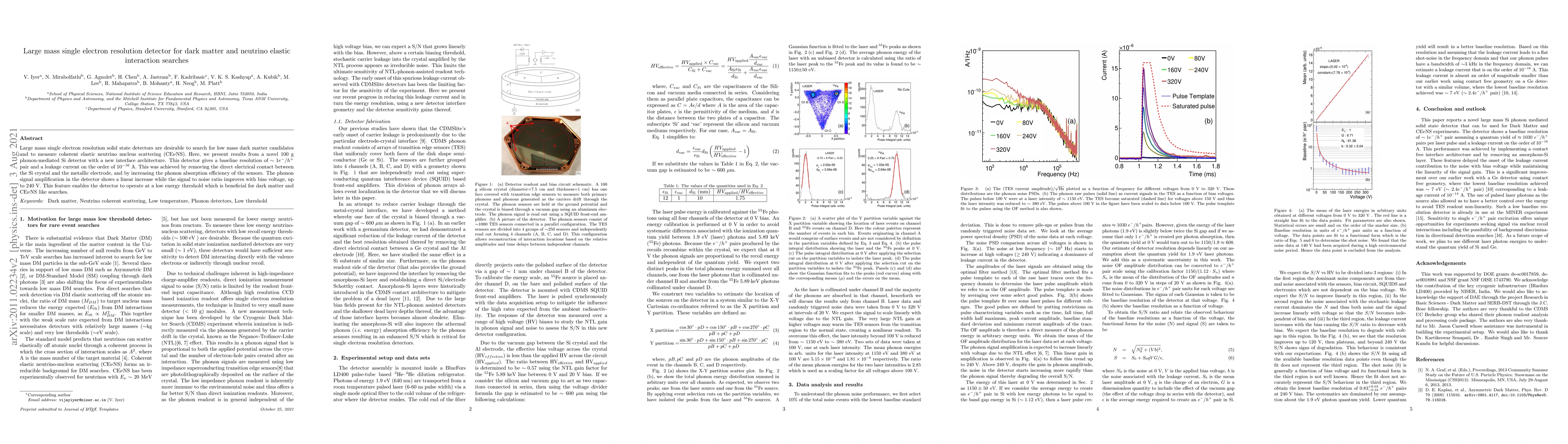 Researchers developed a novel 100g solid-state detector with improved resolution and reduced leakage current for detecting dark matter and neutrino interactions, enabling low-energy threshold operations.