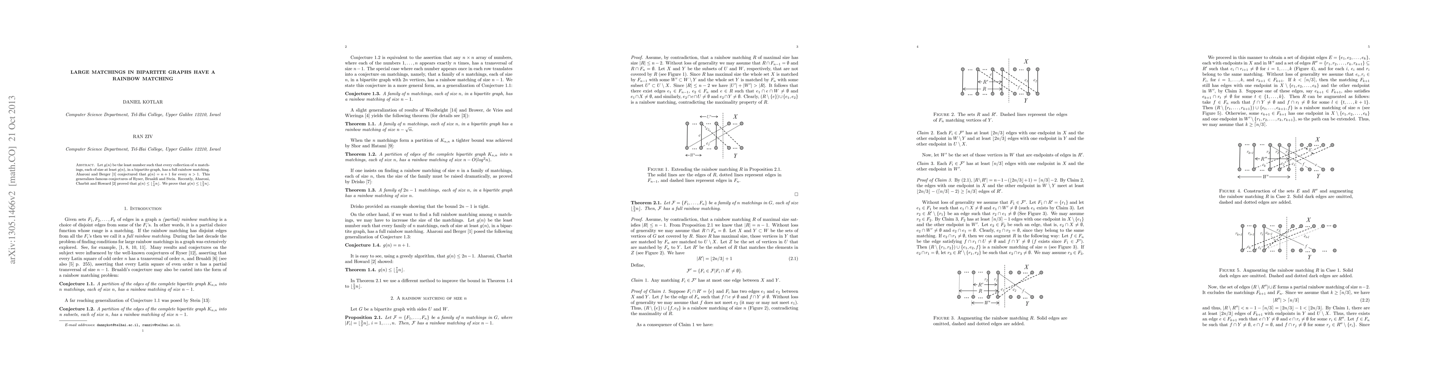 Let $g(n)$ be the least number such that every collection of $n$ matchings, each of size at least $g(n)$, in a bipartite graph, has a full rainbow matching. Aharoni and Berger \cite{AhBer} conjectured that $g(n)=n+1$ for every $n>1$. This generalizes famous conjectures of Ryser, Brualdi and Stein. Recently, Aharoni, Charbit and Howard \cite{ACH} proved that $g(n)\le\lfloor\frac{7}{4}n\rfloor$. We prove that $g(n)\le\lfloor\frac{5}{3} n\rfloor$.