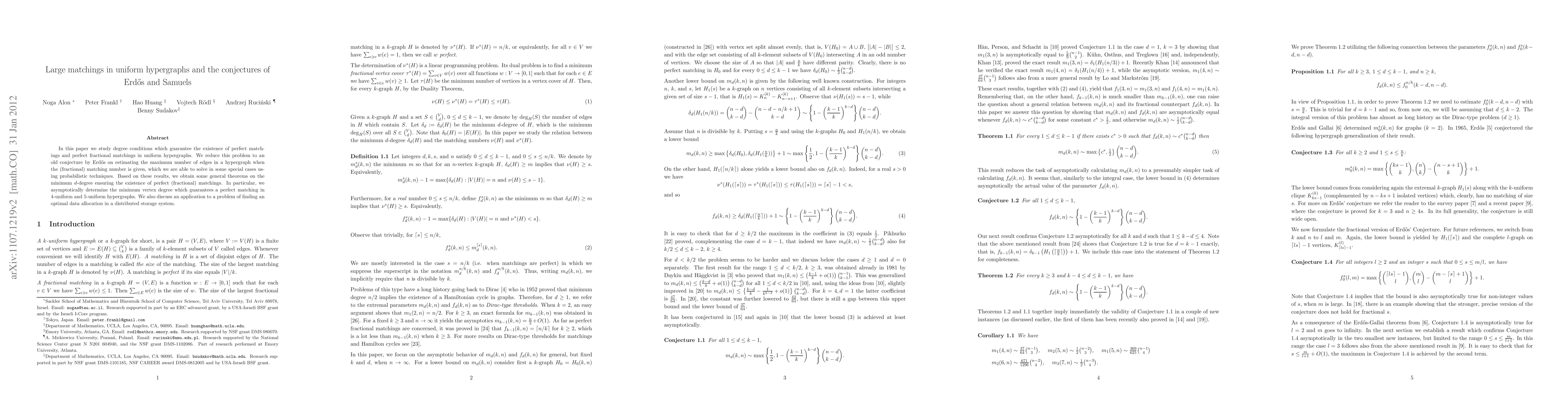 This research paper studies conditions for perfect matchings in uniform hypergraphs, resolving Erdos' conjecture and establishing general theorems on minimum vertex degree requirements for perfect matchings.