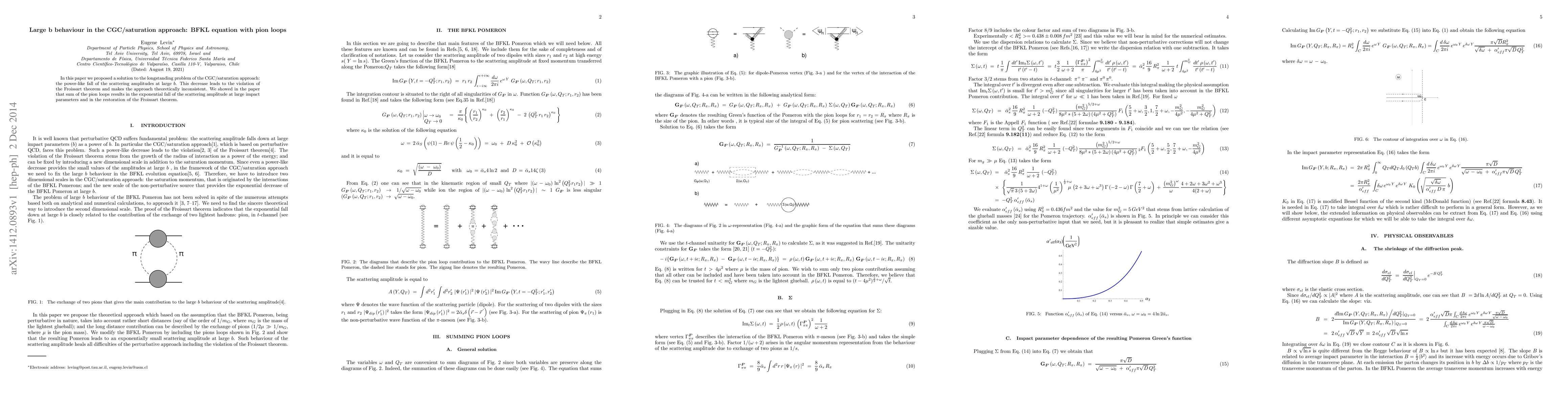 In this paper we proposed a solution to the longstanding problem of the CGC/saturation approach: the power-like fall of the scattering amplitudes at large $b$. This decrease leads to the violation of the Froissart theorem and makes the approach theoretically inconsistent. We showed in the paper that sum of the pion loops results in the exponential fall of the scattering amplitude at large impact parameters and in the restoration of the Froissart theorem.