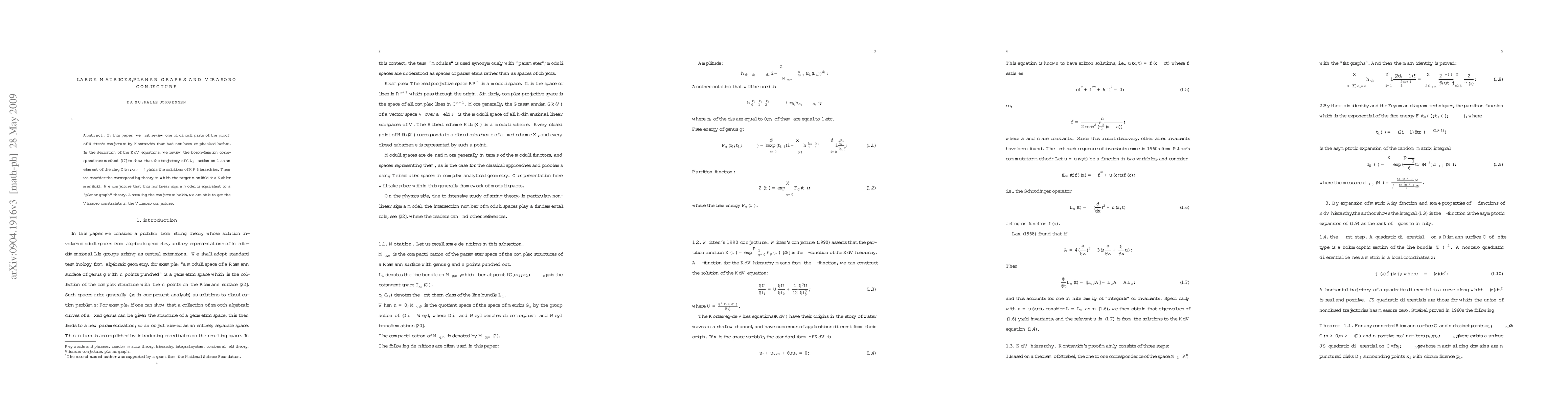 The paper's main technical contribution lies in the detailed review and extension of the proof of Witten's conjecture by Kontsevich, the presentation of representation theory for the Virasoro algebra, and the proposal of a novel conjecture linking Kähler manifold nonlinear sigma models to planar graph theories.