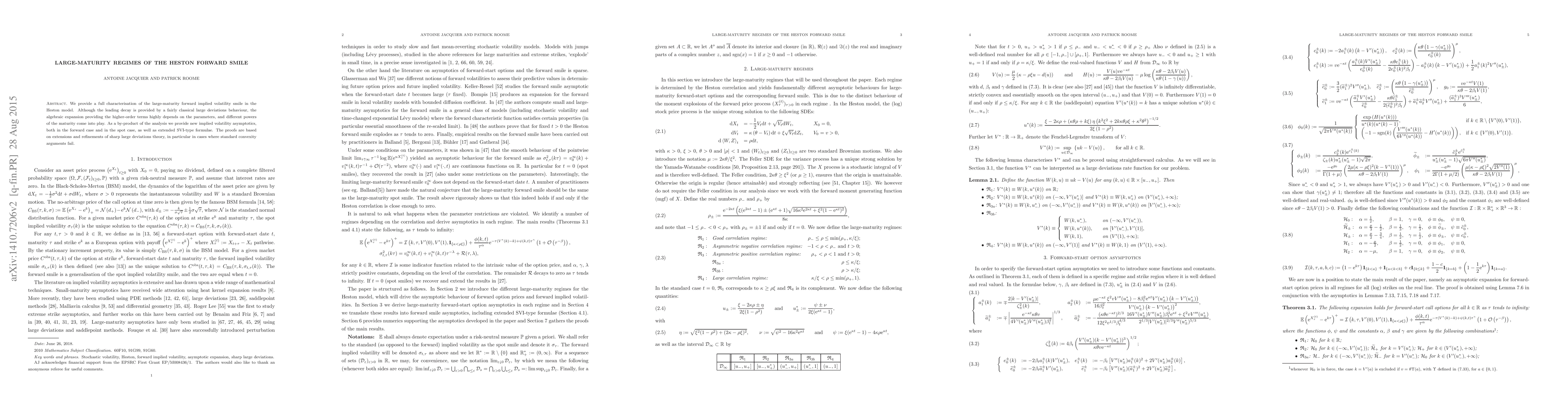 This paper characterizes the large-maturity forward implied volatility smile in the Heston model, revealing that the leading decay follows classical large deviations behavior, while higher-order terms depend on parameters and involve different maturity powers. It also provides new implied volatility asymptotics and extended SVI-type formulae, relying on refined large deviations theory.