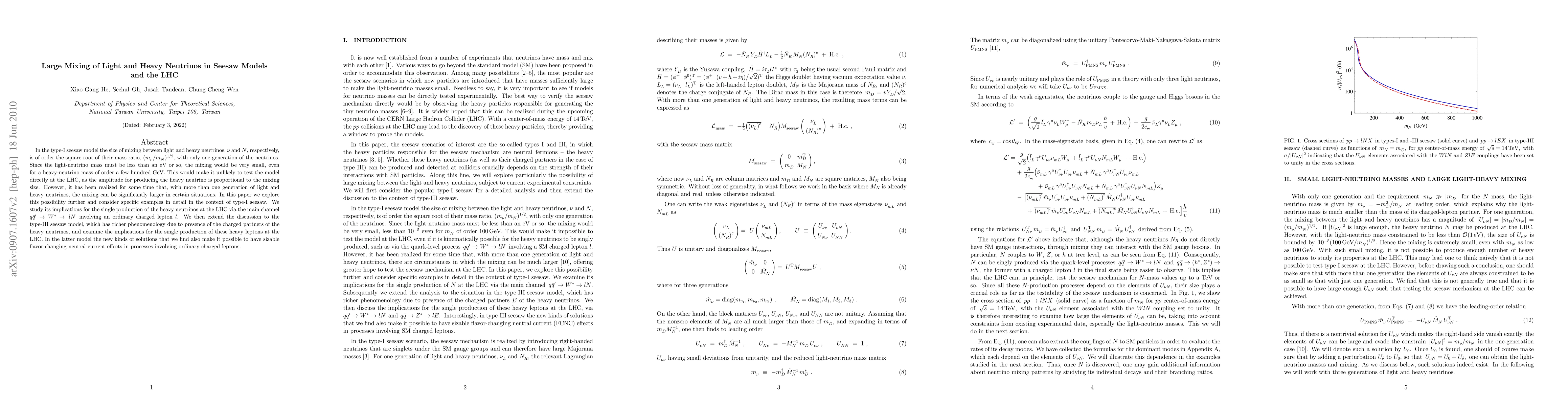 This paper explores the potential for large mixing between light and heavy neutrinos in type-I seesaw models, which could significantly enhance the production of heavy neutrinos at the LHC. It also extends the discussion to type-III seesaw models, highlighting their richer phenomenology and implications for flavor-changing neutral-current effects.