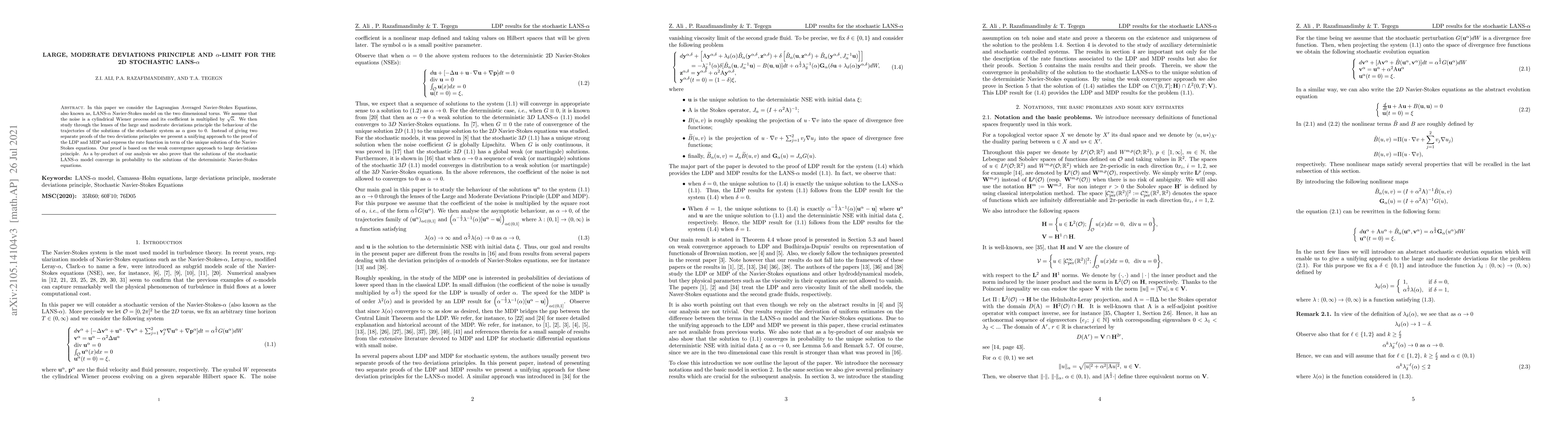 This paper studies the behavior of 2D stochastic LANS-α models as α approaches 0, using the large and moderate deviations principle to analyze convergence and limit behavior.