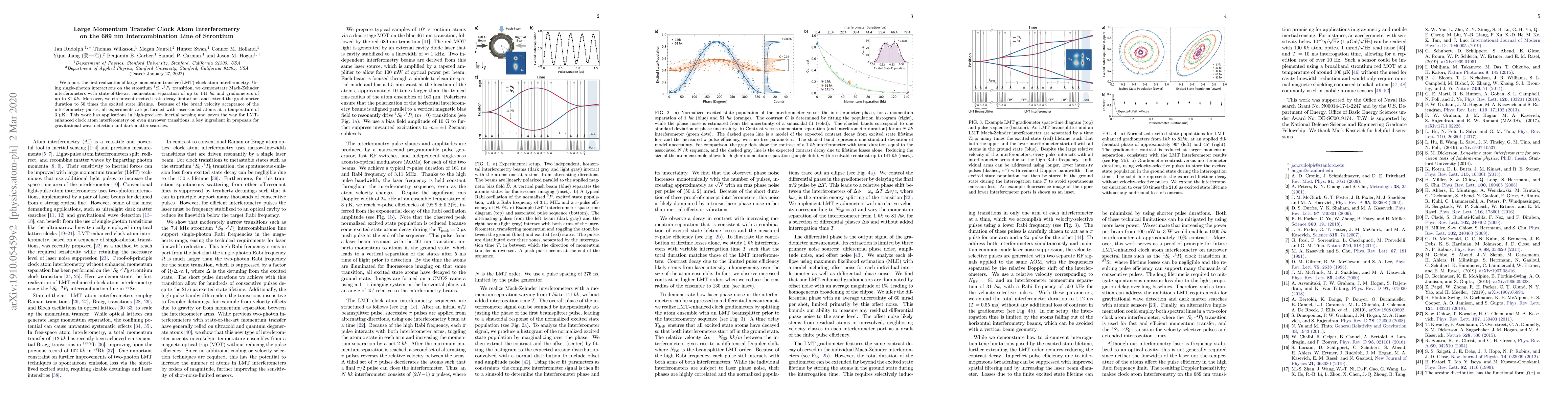 This paper reports the first implementation of large momentum transfer clock atom interferometry on strontium's 689 nm intercombination line, achieving state-of-the-art separations and extended gradiometer durations, paving the way for high-precision inertial sensing and advanced gravitational wave detection.