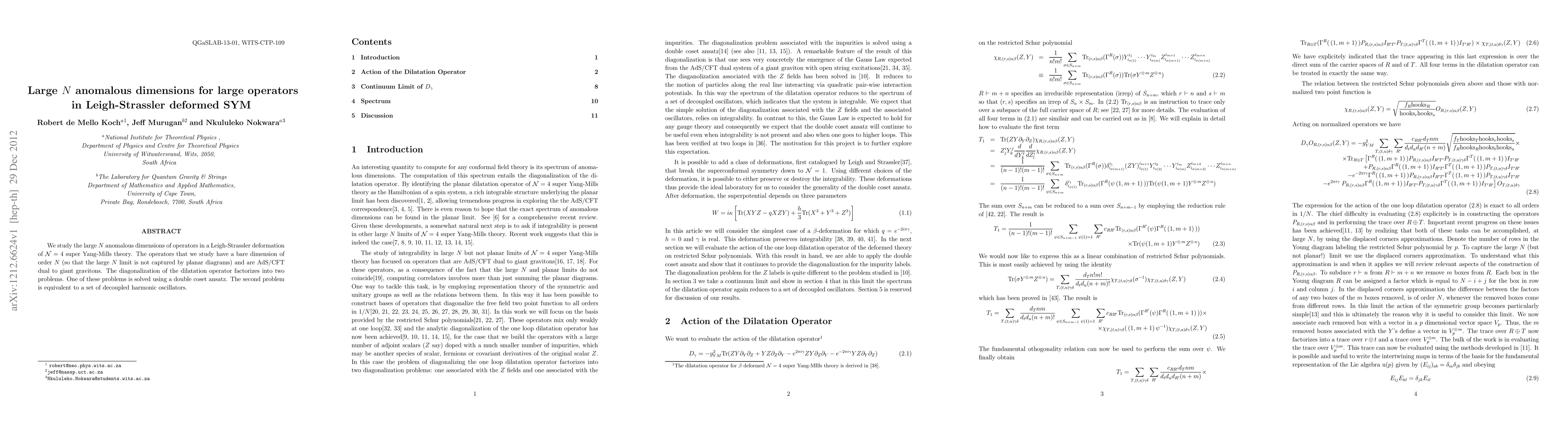 This paper investigates the large N anomalous dimensions of large operators in a Leigh-Strassler deformed N=4 super Yang-Mills theory, focusing on operators with a dimension of order N. The study employs a double coset ansatz to solve part of the problem, revealing the operators' AdS/CFT duals as giant gravitons.