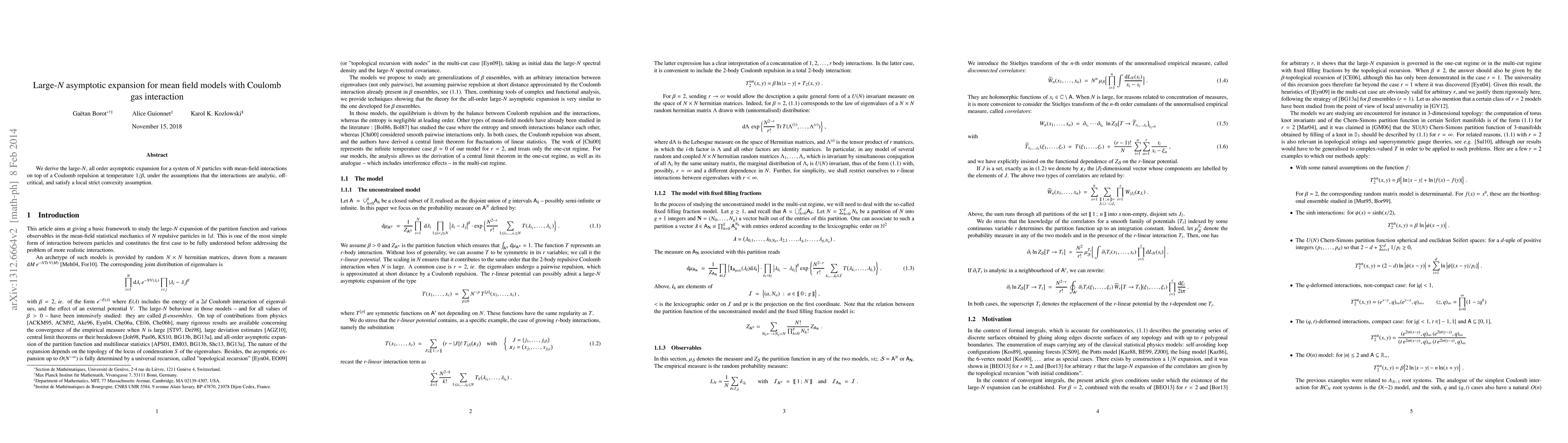 Researchers developed a new method for analyzing mean-field models with Coulomb gas interactions, leading to an asymptotic expansion that provides insights into the behavior of large systems at temperature 1/eta.
