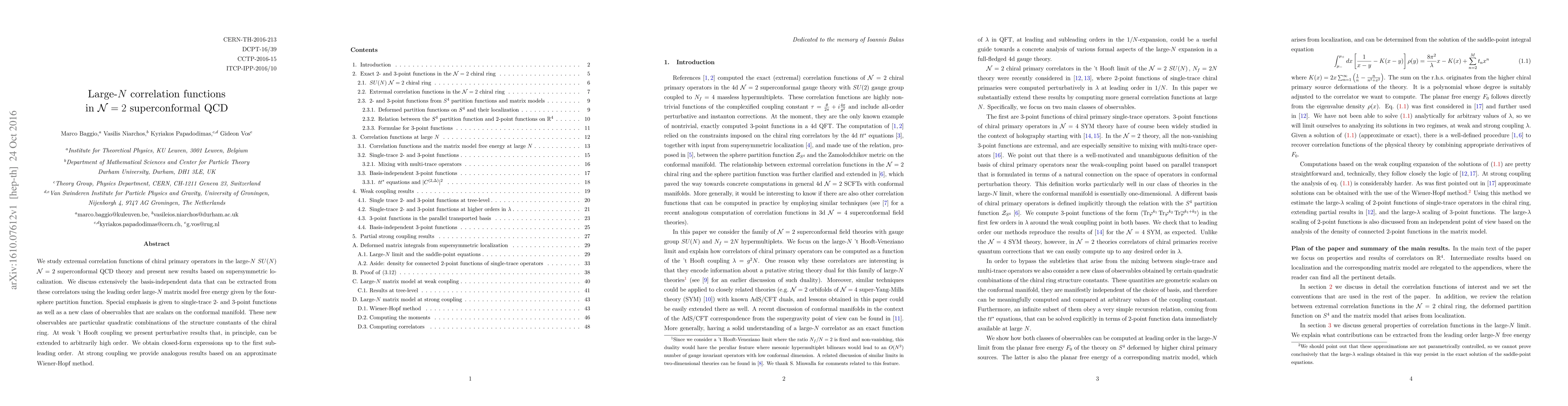 We study extremal correlation functions of chiral primary operators in the large-N SU(N) ${\cal N} = 2$ superconformal QCD theory and present new results based on supersymmetric localization. We discuss extensively the basis-independent data that can be extracted from these correlators using the leading order large-N matrix model free energy given by the four-sphere partition function. Special emphasis is given to single-trace 2- and 3-point functions as well as a new class of observables that are scalars on the conformal manifold. These new observables are particular quadratic combinations of the structure constants of the chiral ring. At weak 't Hooft coupling we present perturbative results that, in principle, can be extended to arbitrarily high order. We obtain closed-form expressions up to the first subleading order. At strong coupling we provide analogous results based on an approximate Wiener-Hopf method.
