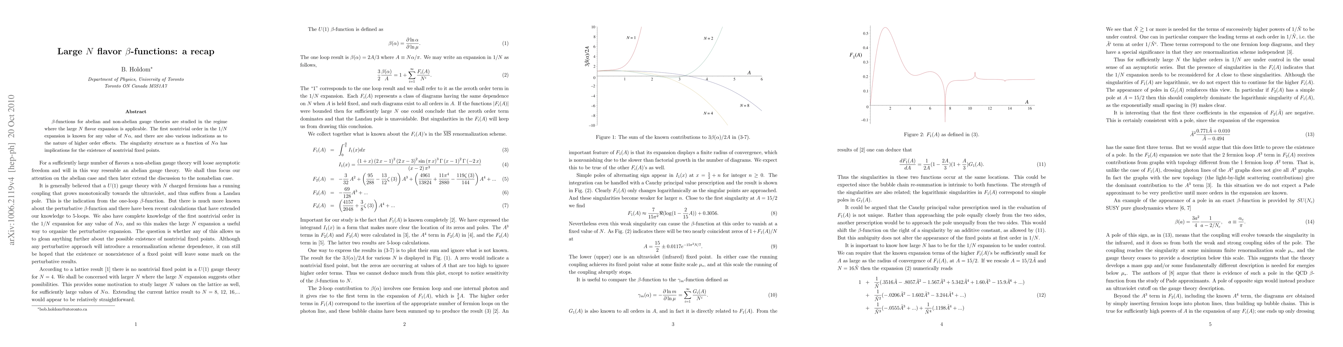 $\beta$-functions for abelian and non-abelian gauge theories are studied in the regime where the large $N$ flavor expansion is applicable. The first nontrivial order in the 1/$N$ expansion is known for any value of $N\alpha$, and there are also various indications as to the nature of higher order effects. The singularity structure as a function of $N\alpha$ has implications for the existence of nontrivial fixed points.