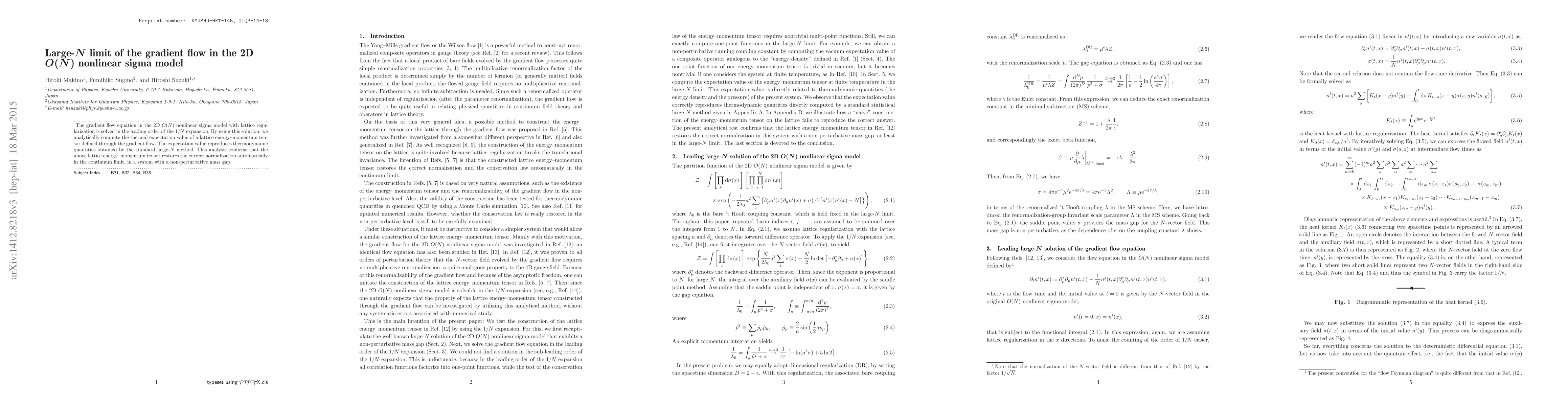 This paper solves the gradient flow equation in the 2D $O(N)$ nonlinear sigma model using the large-$N$ limit and computes the thermal expectation value of a lattice energy-momentum tensor. It confirms that the tensor restores correct normalization in the continuum limit, validating the model's thermodynamic properties.