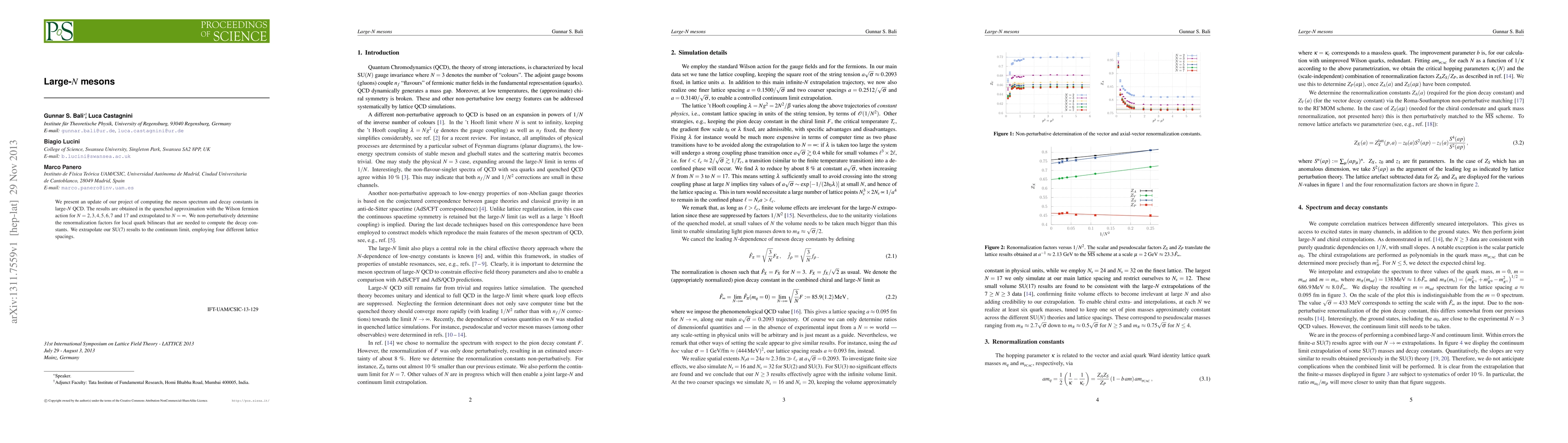 We present an update of our project of computing the meson spectrum and decay constants in large-N QCD. The results are obtained in the quenched approximation with the Wilson fermion action for N = 2, 3, 4, 5, 6, 7 and 17 and extrapolated to infinite N. We non-perturbatively determine the renormalization factors for local quark bilinears that are needed to compute the decay constants. We extrapolate our SU(7) results to the continuum limit, employing four different lattice spacings.