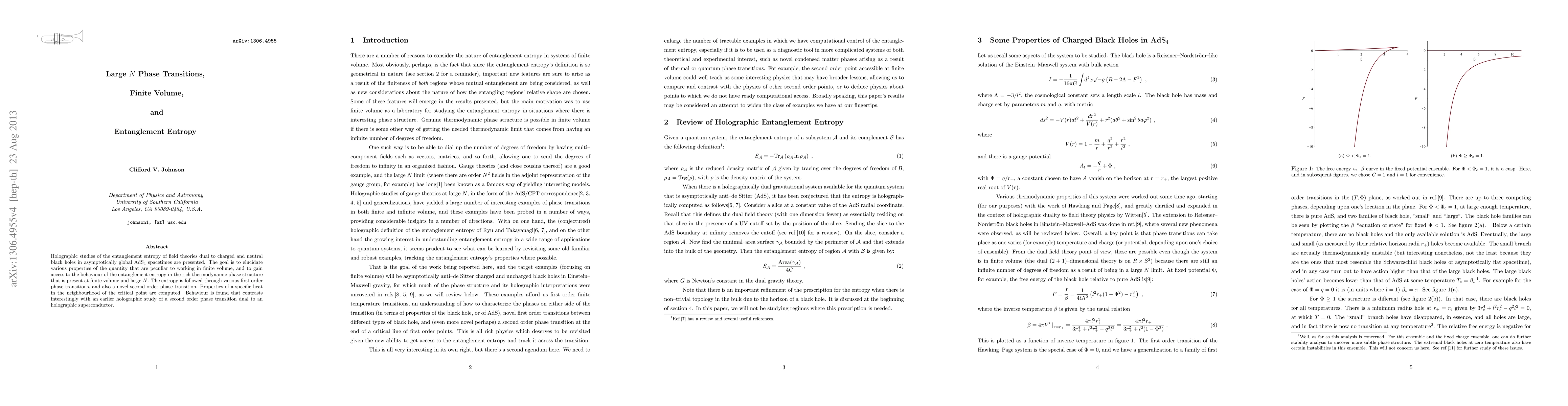 The paper presents a detailed analysis of entanglement entropy in finite volume systems using holographic techniques, identifying novel features near phase transitions and computing specific heat properties in the critical region.
