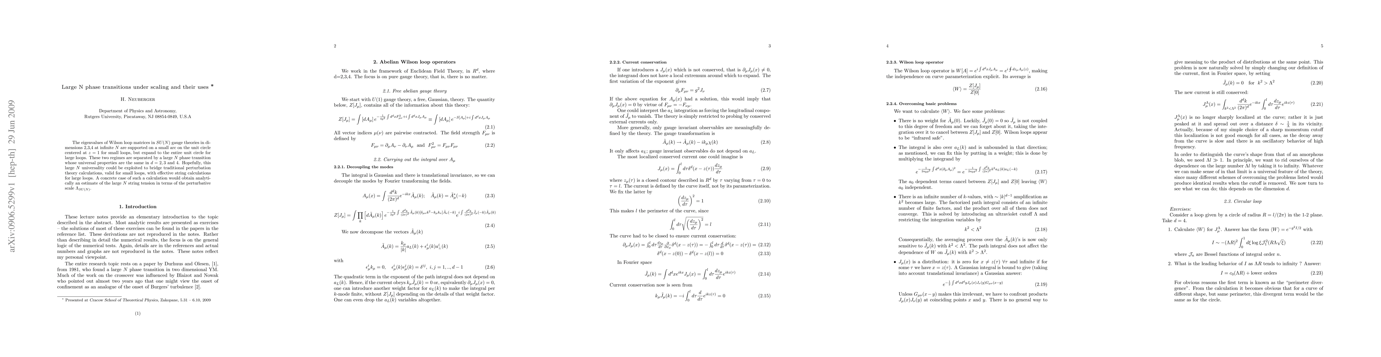 The eigenvalues of Wilson loop matrices in SU(N) gauge theories in dimensions 2,3,4 at infinite N are supported on a small arc on the unit circle centered at $z=1$ for small loops, but expand to the entire unit circle for large loops. These two regimes are separated by a large N phase transition whose universal properties are the same in d=2,3 and 4. Hopefully, this large N universality could be exploited to bridge traditional perturbation theory calculations, valid for small loops, with effective string calculations for large loops. A concrete case of such a calculation would obtain analytically an estimate of the large N string tension in terms of the perturbative scale Lambda(QCD,N).