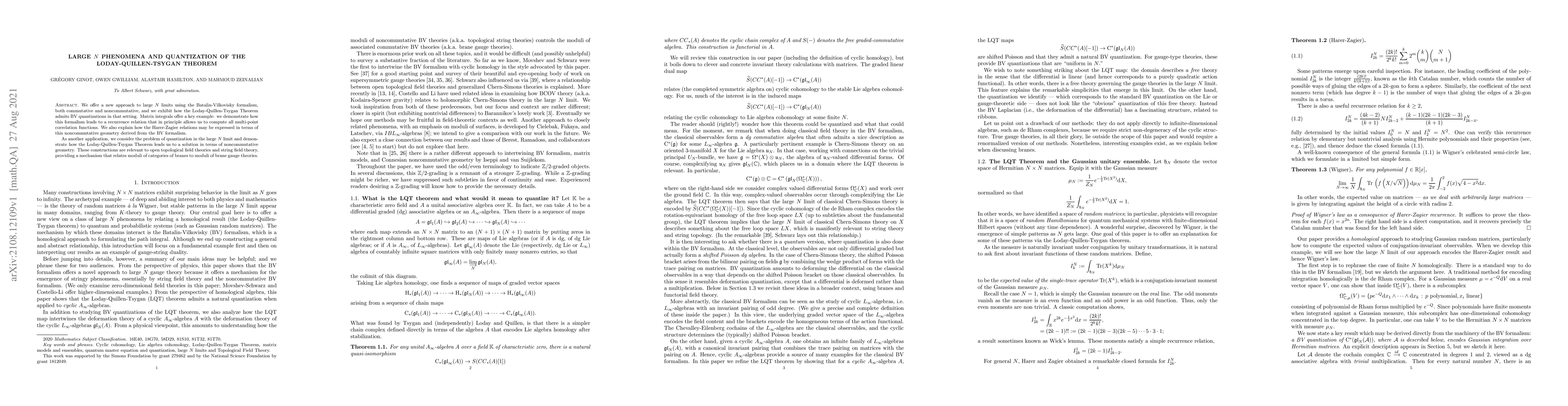 Researchers develop a new approach to large N limits using Batalin-Vilkovisky formalism, showing how the Loday-Quillen-Tsygan Theorem can be quantized in this setting, with implications for open topological field theories and string field theory.