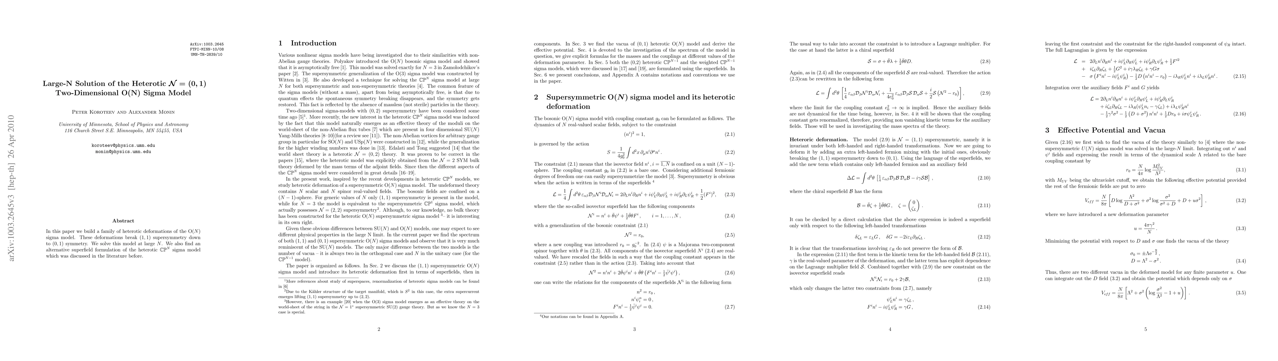 Summary: This paper constructs heterotic deformations of the O(N) sigma model, reducing supersymmetry to (0,1), and solves the model at large N, also presenting an alternative superfield formulation for the heterotic CP^N sigma model.