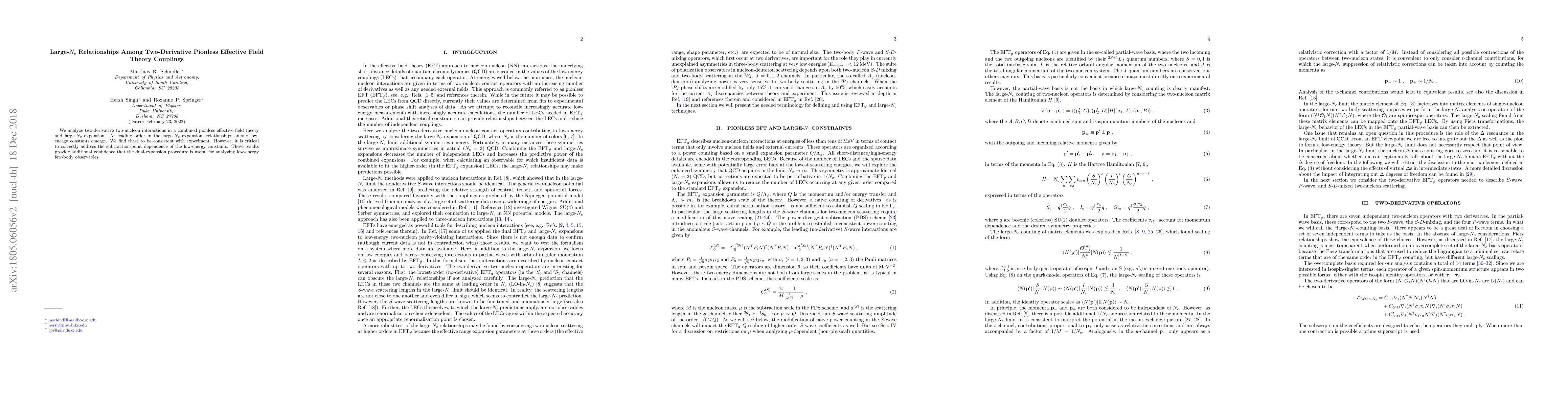 This paper investigates two-derivative interactions in pionless effective field theory using a large-$N_c$ expansion, revealing relationships among low-energy constants that are consistent with experimental data. Correct handling of subtraction-point dependence is crucial for these findings, supporting the utility of dual-expansion methods for analyzing low-energy few-nucleon systems.