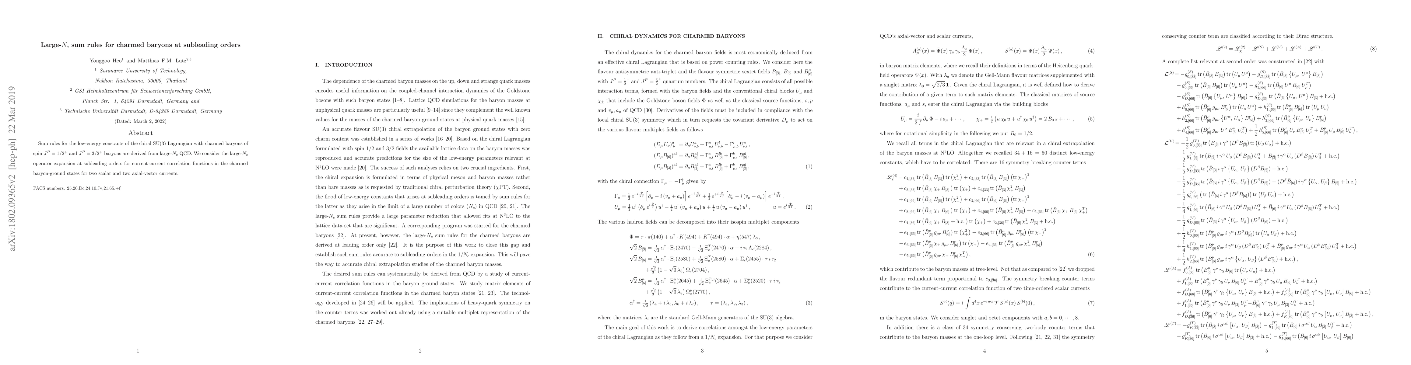 This paper derives sum rules for low-energy constants in the chiral SU(3) Lagrangian for charmed baryons, focusing on spin states J^P=1/2^+ and J^P=3/2^+. It employs large-N_c QCD and considers subleading orders in the operator expansion for current-current correlation functions.