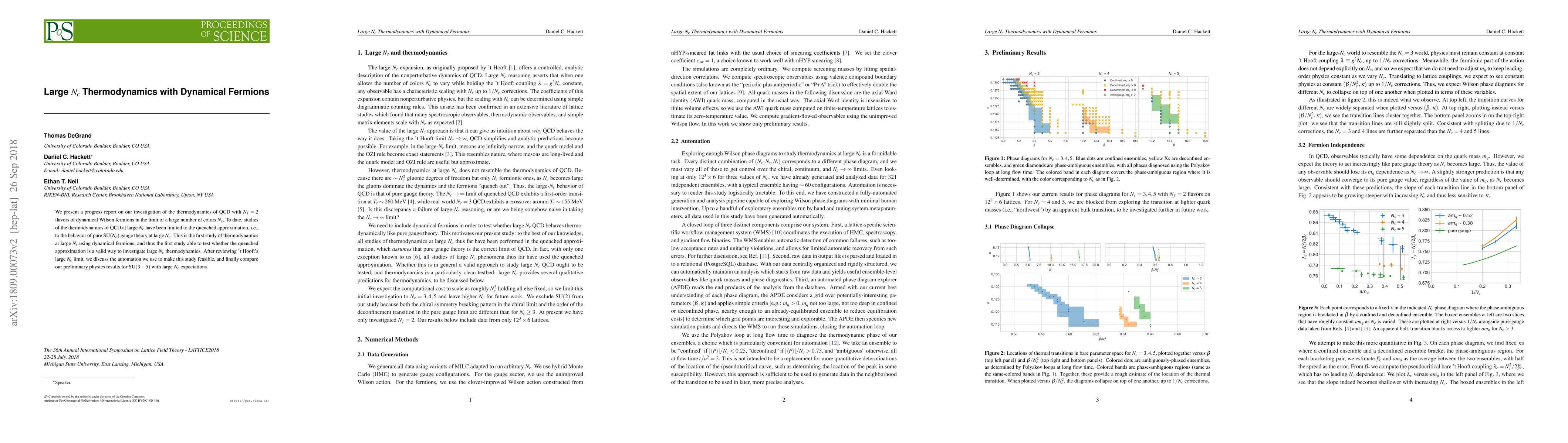 We present a progress report on our investigation of the thermodynamics of QCD with $N_f=2$ flavors of dynamical Wilson fermions in the limit of a large number of colors $N_c$. To date, studies of the thermodynamics of QCD at large $N_c$ have been limited to the quenched approximation, i.e., to the behavior of pure $\mathrm{SU}(N_c)$ gauge theory at large $N_c$. This is the first study of thermodynamics at large $N_c$ using dynamical fermions, and thus the first study able to test whether the quenched approximation is a valid way to investigate large $N_c$ thermodynamics. After reviewing 't Hooft's large $N_c$ limit, we discuss the automation we use to make this study feasible, and finally compare our preliminary physics results for $\mathrm{SU}(3-5)$ with large $N_c$ expectations.