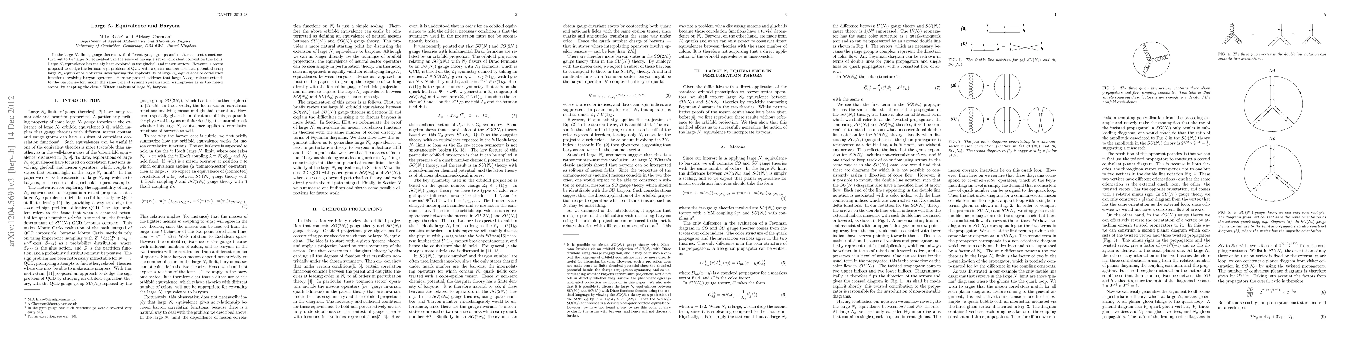 This paper demonstrates that large Nc equivalence, previously observed in glueball and meson sectors, also applies to baryons. By adapting Witten's analysis of large Nc baryons, the authors provide evidence that correlation functions involving baryon operators remain consistent under large Nc equivalence, contingent on similar symmetry-realization assumptions.