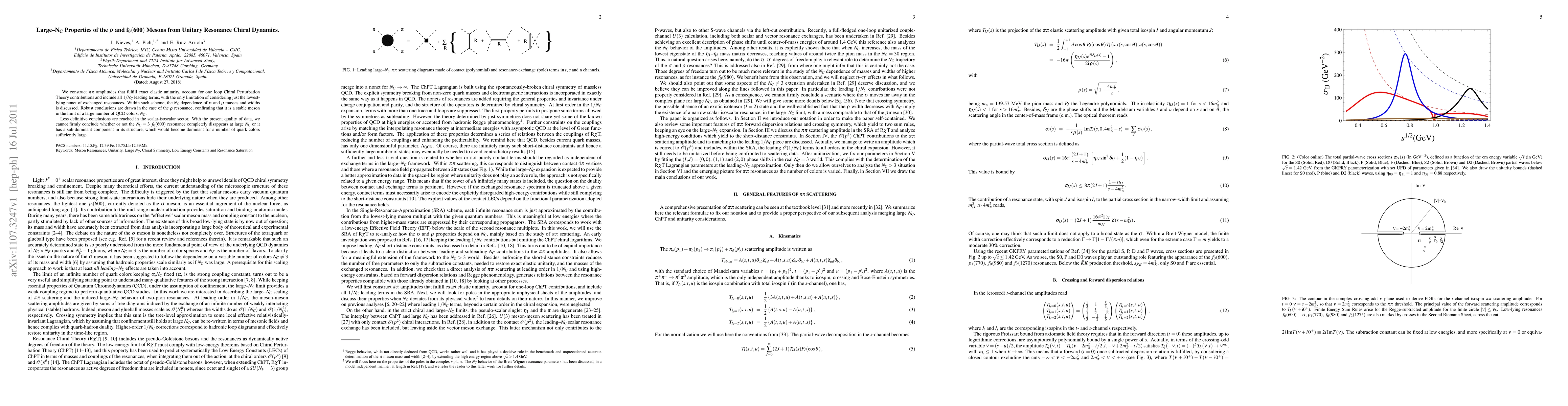 We construct pi-pi amplitudes that fulfill exact elastic unitarity, account for one loop Chiral Perturbation Theory contributions and include all 1/Nc leading terms, with the only limitation of considering just the lowest-lying nonet of exchanged resonances. Within such scheme, the Nc dependence of sigma and rho masses and widths is discussed. Robust conclusions are drawn in the case of the rho resonance, confirming that it is a stable meson in the limit of a large number of QCD colors, Nc. Less definitive conclusions are reached in the scalar-isoscalar sector. With the present quality of data, we cannot firmly conclude whether or not the Nc=3 f0(600) resonance completely disappears at large Nc or it has a sub-dominant component in its structure, which would become dominant for a number of quark colors sufficiently large.