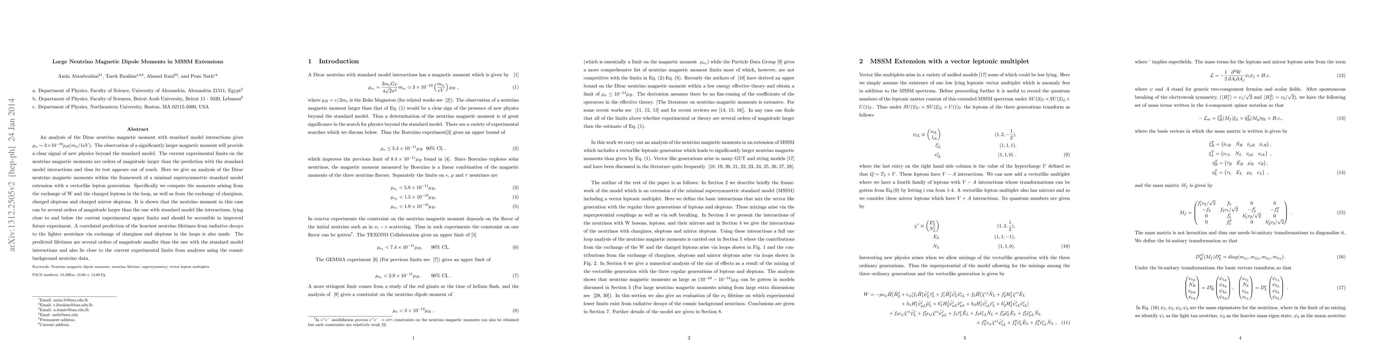 An analysis of the Dirac neutrino magnetic moment with standard model interactions gives $\mu_\nu\sim 3 \times 10^{-19} \mu_B (m_\nu/1 eV)$. The observation of a significantly larger magnetic moment will provide a clear signal of new physics beyond the standard model. The current experimental limits on the neutrino magnetic moments are orders of magnitude larger than the prediction with the standard model interactions and thus its test appears out of reach. Here we give an analysis of the Dirac neutrino magnetic moments within the framework of a minimal supersymmetric standard model extension with a vectorlike lepton generation. Specifically we compute the moments arising from the exchange of W and the charged leptons in the loop, as well as from the exchange of charginos, charged sleptons and charged mirror sleptons. It is shown that the neutrino moment in this case can be several orders of magnitude larger than the one with standard model like interactions, lying close to and below the current experimental upper limits and should be accessible in improved future experiment. A correlated prediction of the heaviest neutrino lifetimes from radiative decays to the lighter neutrinos via exchange of charginos and sleptons in the loops is also made. The predicted lifetimes are several orders of magnitudes smaller than the one with the standard model interactions and also lie close to the current experimental limits from analyses using the cosmic background neutrino data.