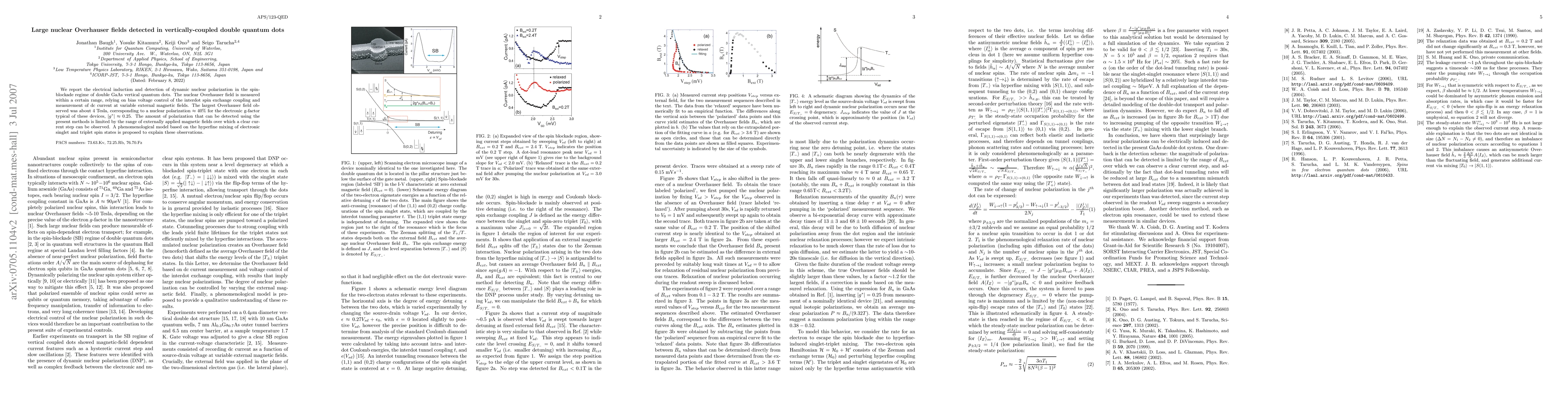 The study demonstrates the electrical induction of dynamic nuclear polarization in vertically-coupled GaAs quantum dots, achieving a peak Overhauser field of 4 Tesla and a nuclear polarization of 40%. A qualitative phenomenological model explains these findings.