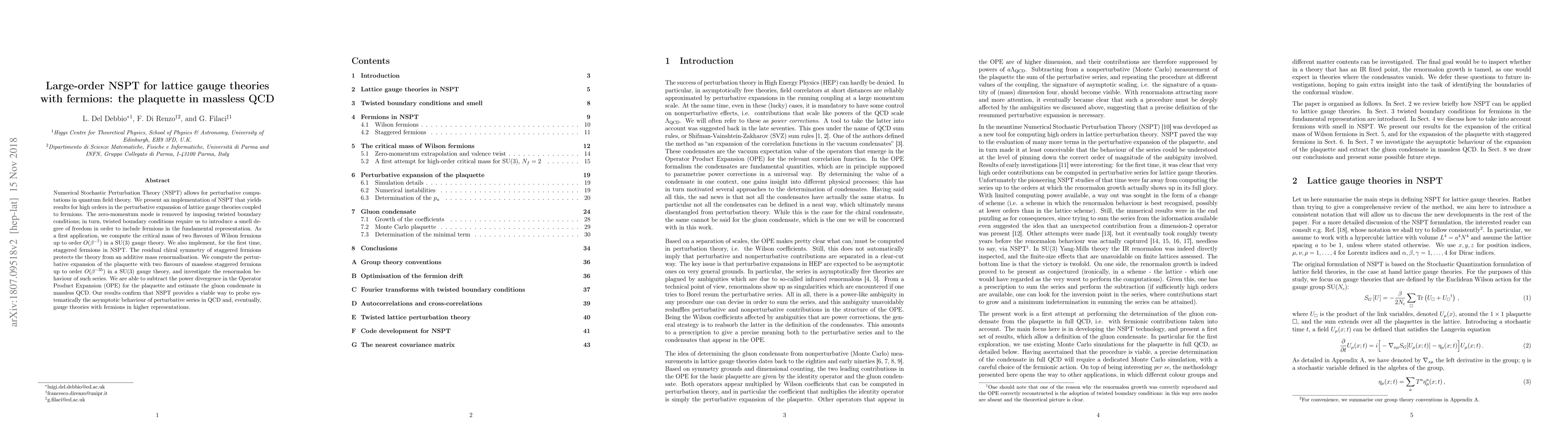 This paper presents an advanced NSPT implementation for lattice gauge theories with fermions, achieving high-order perturbative computations. It computes the critical mass of Wilson fermions and the plaquette for staggered fermions, revealing the potential of NSPT to systematically explore the asymptotic behavior of perturbative series in QCD and gauge theories.