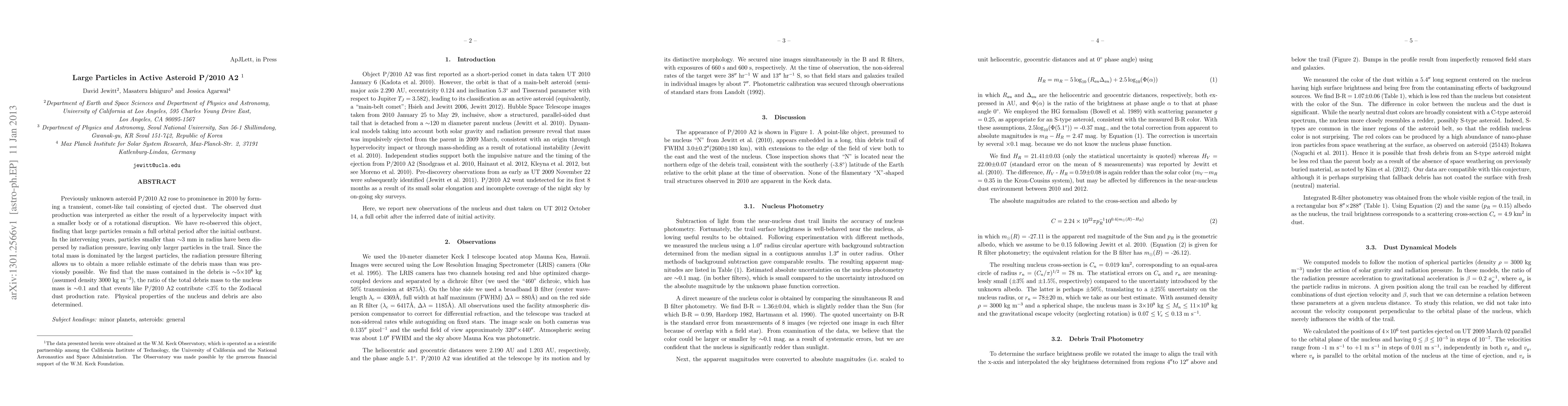 Scientists re-observed asteroid P/2010 A2 and found that only large particles remain in its trail after a massive dust outburst, allowing for a more accurate estimate of the debris mass.