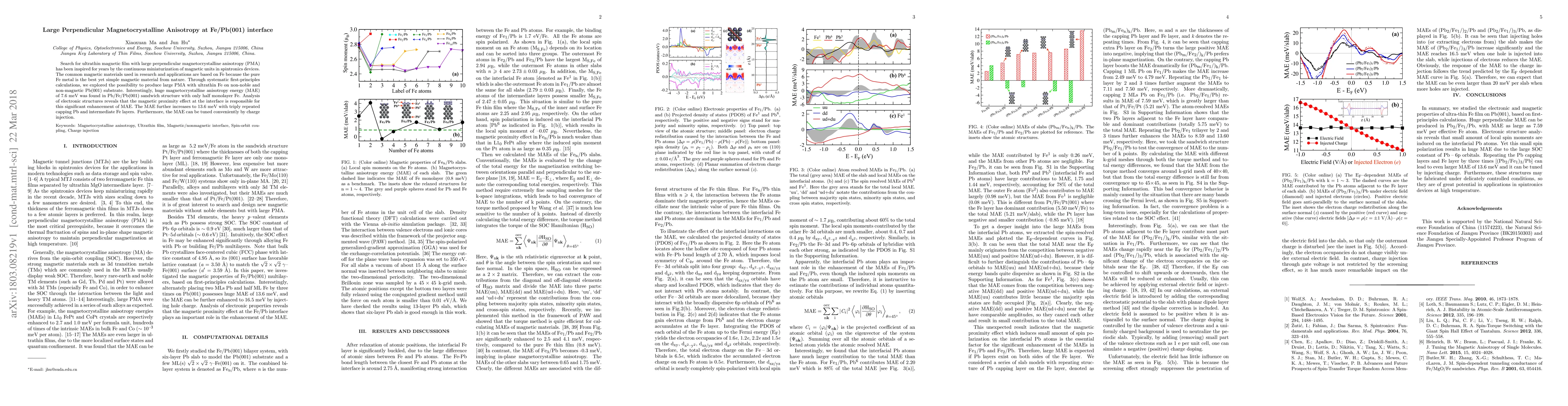 This study demonstrates the potential of ultrathin Fe films on Pb(001) substrates to exhibit large perpendicular magnetocrystalline anisotropy (PMA) of 7.6 meV, driven by magnetic proximity effects at the interface. Tuning of PMA to 13.6 meV is achieved via triply repeated Pb and Fe layers, with further adjustments possible through charge injection.
