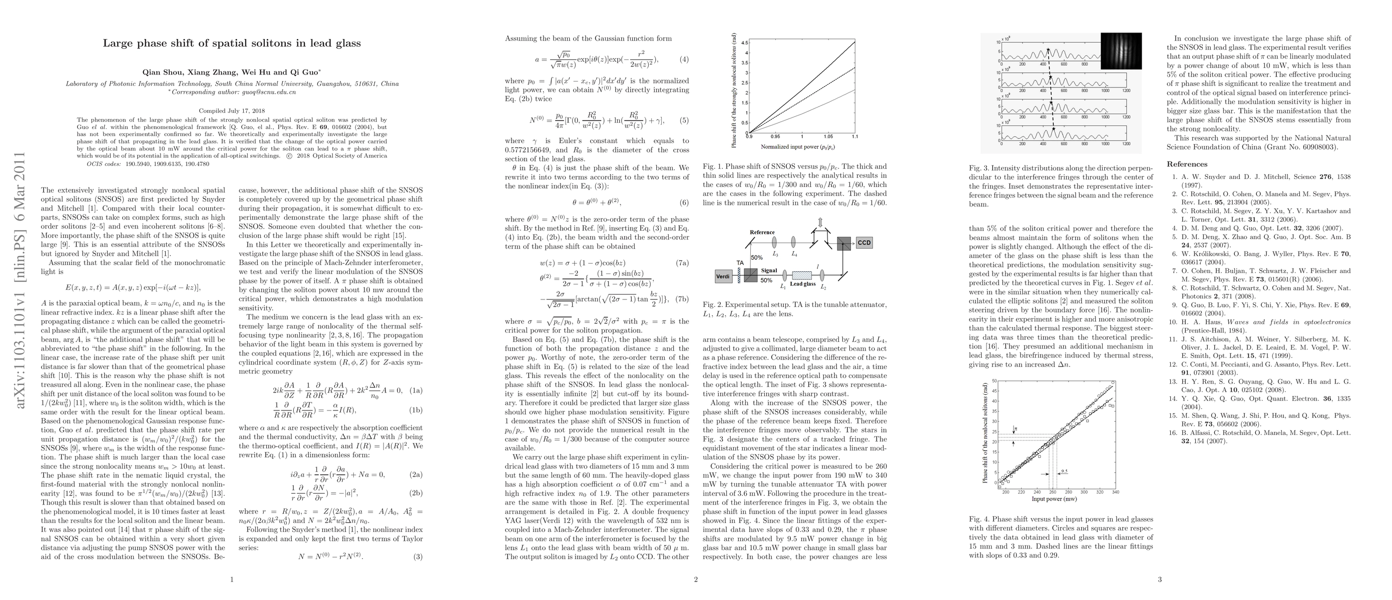Researchers confirm a large phase shift of spatial solitons in lead glass, where small changes in optical power can cause a π phase shift, enabling potential applications in all-optical switching.