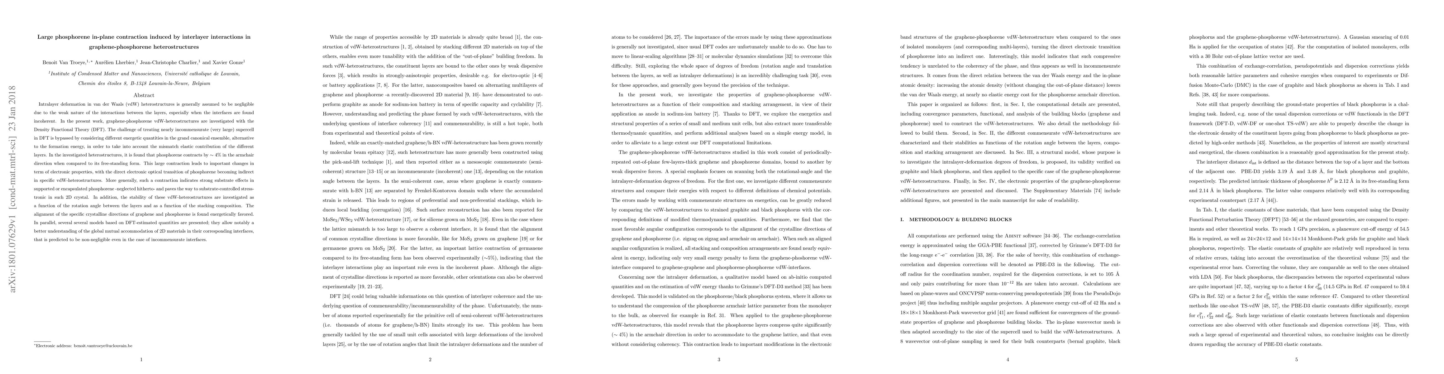 Intralayer deformation in van der Waals (vdW) heterostructures is generally assumed to be negligible due to the weak nature of the interactions between the layers, especially when the interfaces are found incoherent. In the present work, graphene-phosphorene vdW-heterostructures are investigated with the Density Functional Theory (DFT). The challenge of treating nearly incommensurate (very large) supercell in DFT is bypassed by considering different energetic quantities in the grand canonical ensemble, alternative to the formation energy, in order to take into account the mismatch elastic contribution of the different layers. In the investigated heterostructures, it is found that phosphorene contracts by ~4% in the armchair direction when compared to its free-standing form. This large contraction leads to important changes in term of electronic properties, with the direct electronic optical transition of phosphorene becoming indirect in specific vdW-heterostructures. More generally, such a contraction indicates strong substrate effects in supported or encapsulated phosphorene -neglected hitherto- and paves the way to substrate-controlled stress- tronic in such 2D crystal. In addition, the stability of these vdW-heterostructures are investigated as a function of the rotation angle between the layers and as a function of the stacking composition. The alignment of the specific crystalline directions of graphene and phosphorene is found energetically favored. In parallel, several several models based on DFT-estimated quantities are presented; they allow notably a better understanding of the global mutual accommodation of 2D materials in their corresponding interfaces, that is predicted to be non-negligible even in the case of incommensurate interfaces.