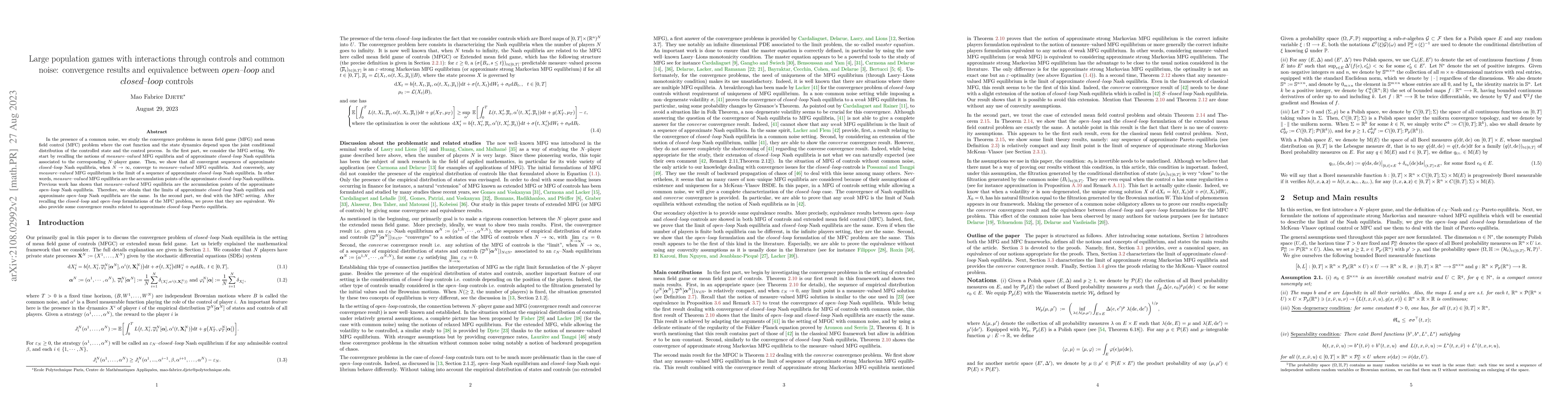 This paper studies convergence in large population games under common noise, showing equivalence between $open$--$loop$ and $closed$--$loop$ controls in mean field game (MFG) and mean field control (MFC) settings. It demonstrates that $measure$--$valued$ MFG equilibria are limits of both $closed$--$loop$ and $open$--$loop$ Nash equilibria, and proves the equivalence of $closed$--$loop$ and $open$--$loop$ formulations in MFC.
