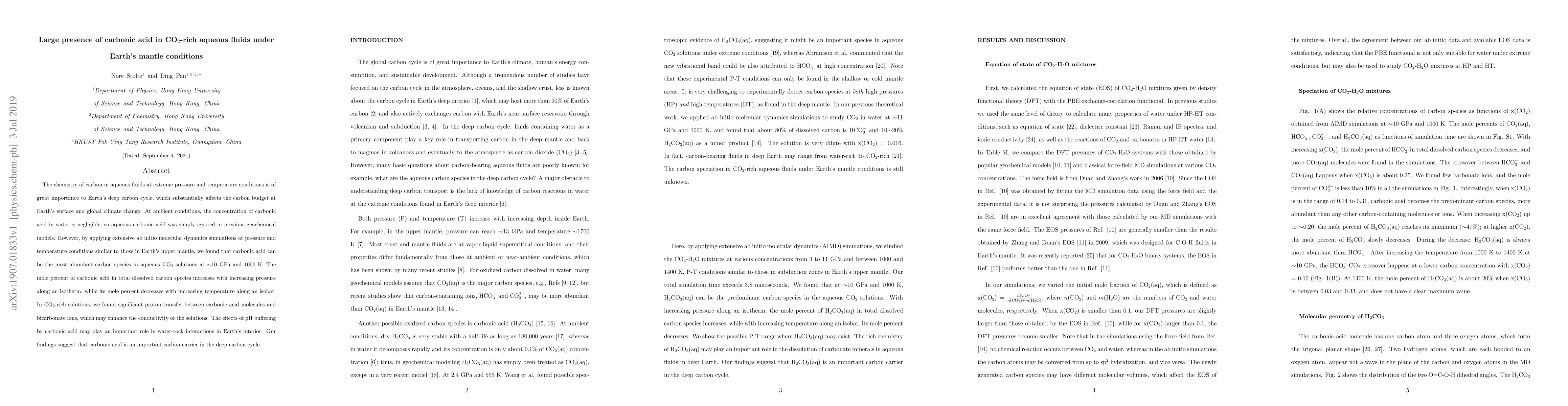This paper reveals that carbonic acid becomes the dominant carbon species in CO$_2$-rich aqueous fluids under Earth's mantle conditions, challenging previous geochemical models. The study highlights the significant role of carbonic acid in the deep carbon cycle and its potential influence on water-rock interactions and global climate change.