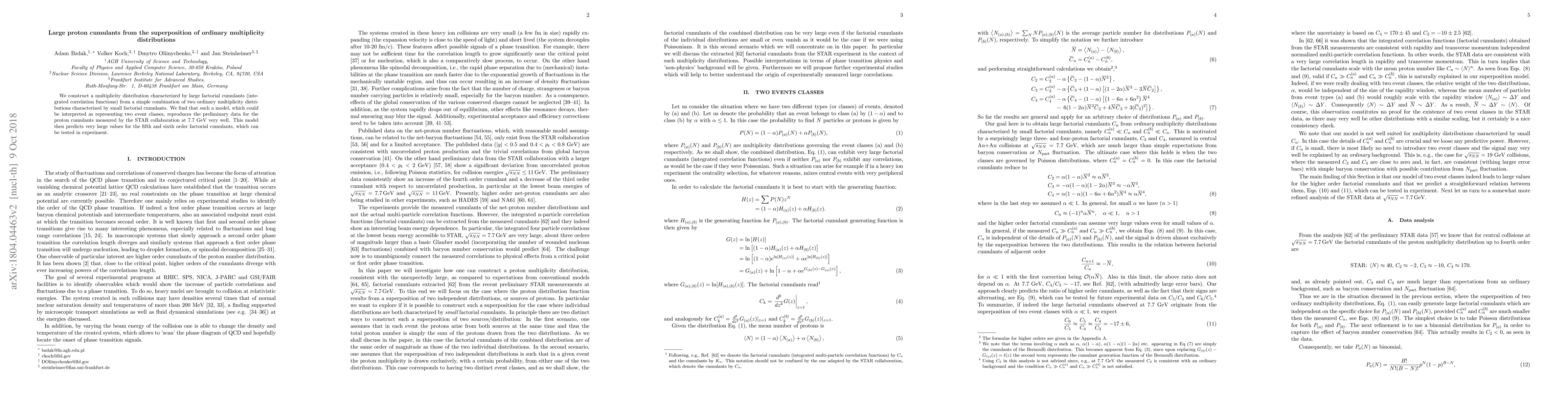 We construct a multiplicity distribution characterized by large factorial cumulants (integrated correlation functions) from a simple combination of two ordinary multiplicity distributions characterized by small factorial cumulants. We find that such a model, which could be interpreted as representing two event classes, reproduces the preliminary data for the proton cumulants measured by the STAR collaboration at $7.7$ GeV very well. This model then predicts very large values for the fifth and sixth order factorial cumulants, which can be tested in experiment.