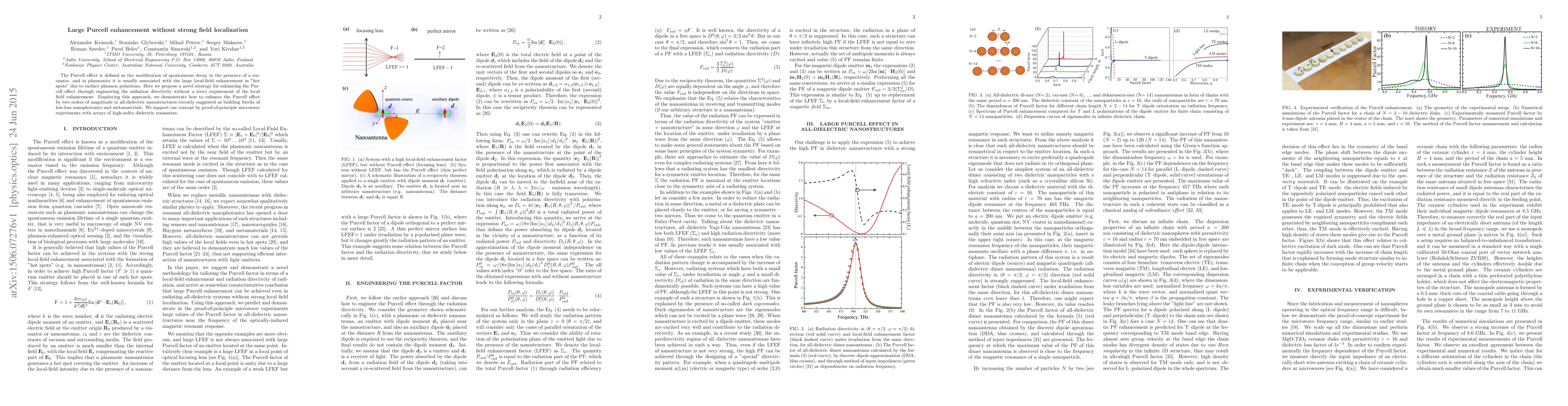 This paper proposes a novel strategy to significantly enhance the Purcell effect through engineered radiation directivity without relying on local field enhancement in plasmonics. The authors demonstrate a two-order-of-magnitude increase in the Purcell effect using all-dielectric nanostructures, supported by microwave experiments.