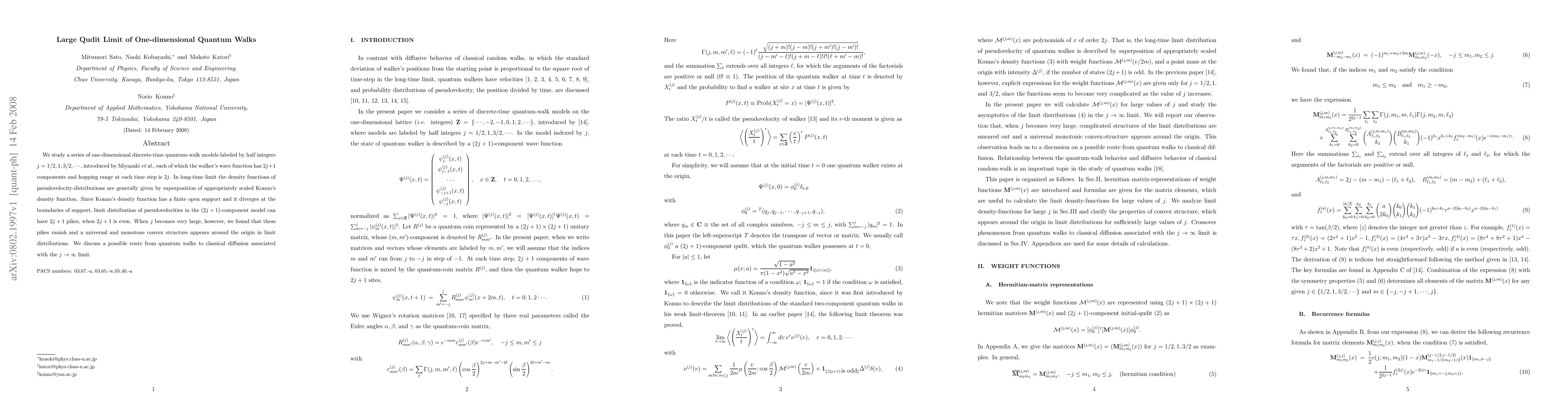 We study a series of one-dimensional discrete-time quantum-walk models labeled by half integers $j=1/2, 1, 3/2, ...$, introduced by Miyazaki {\it et al.}, each of which the walker's wave function has $2j+1$ components and hopping range at each time step is $2j$. In long-time limit the density functions of pseudovelocity-distributions are generally given by superposition of appropriately scaled Konno's density function. Since Konno's density function has a finite open support and it diverges at the boundaries of support, limit distribution of pseudovelocities in the $(2j+1)$-component model can have $2j+1$ pikes, when $2j+1$ is even. When $j$ becomes very large, however, we found that these pikes vanish and a universal and monotone convex structure appears around the origin in limit distributions. We discuss a possible route from quantum walks to classical diffusion associated with the $j \to \infty$ limit.