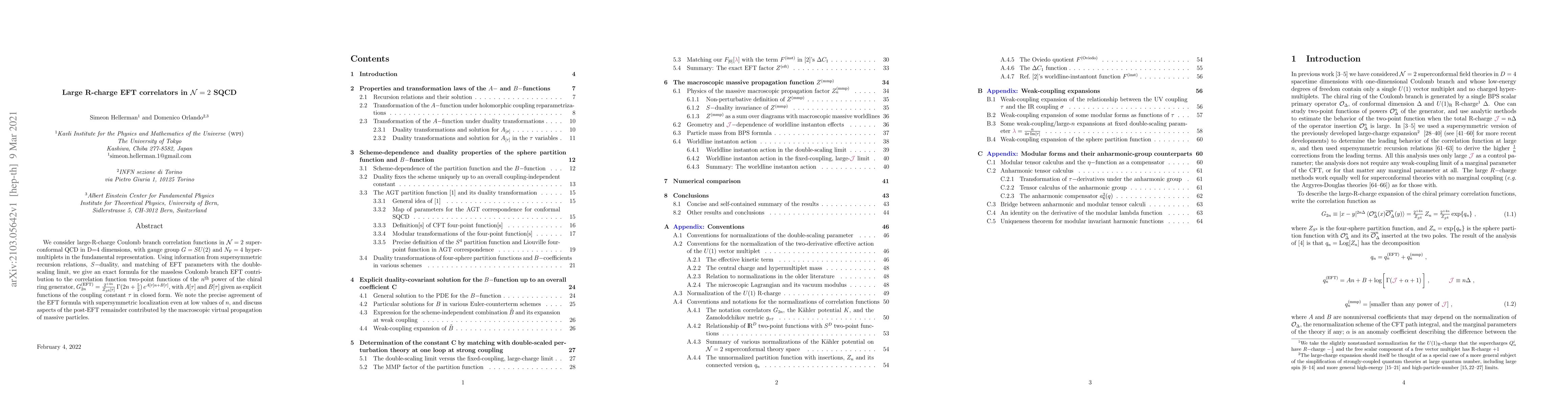 We consider large-R-charge Coulomb branch correlation functions in $\mathcal{N} = 2$ superconformal QCD in D=4 dimensions, with gauge group $SU(2)$ and $N_f = 4$ hypermultiplets in the fundamental representation. Using information from supersymmetric recursion relations, S-duality, and matching of EFT parameters with the double-scaling limit, we give an exact formula for the massless Coulomb branch EFT contribution to the correlation function two-point functions of the n.th power of the chiral ring generator, $G_{2n}^{\text{(EFT)}} = \frac{2^{4n}}{Z_{S^4}[\tau]} \Gamma(2n + 5/2) e^{A[\tau]n + B[\tau]}$ with $A[\tau]$ and $B[\tau]$ given as explicit functions of the coupling constant $\tau$ in closed form. We note the precise agreement of the EFT formula with supersymmetric localization even at low values of $n$, and discuss aspects of the post-EFT remainder contributed by the macroscopic virtual propagation of massive particles.
