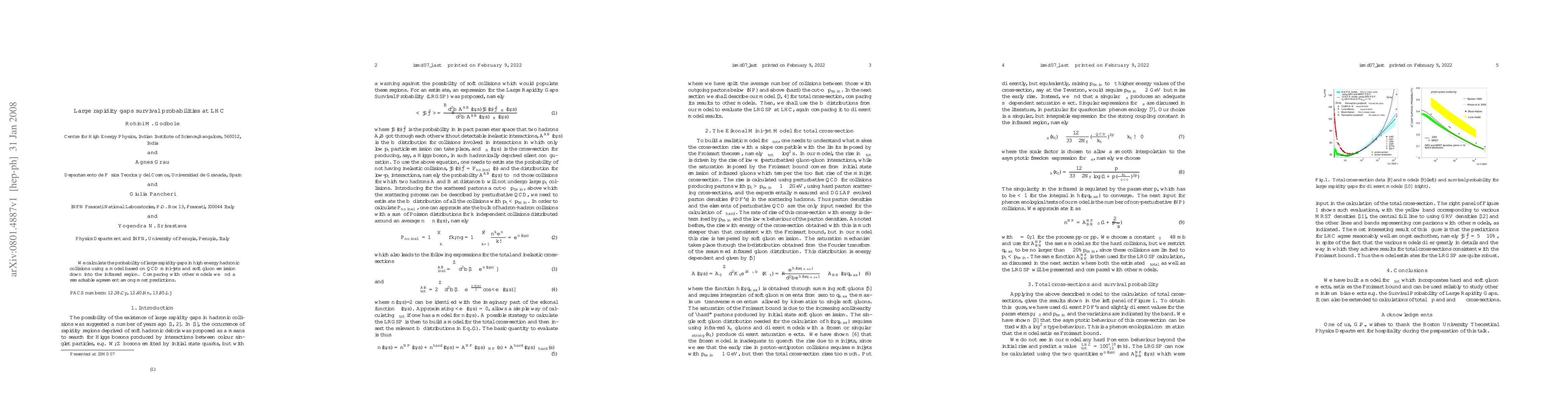 We calculate the probability of large rapidity gaps in high energy hadronic collisions using a model based on QCD mini-jets and soft gluon emission down into the infrared region. Comparing with other models we find a remarkable agreement among most predictions.