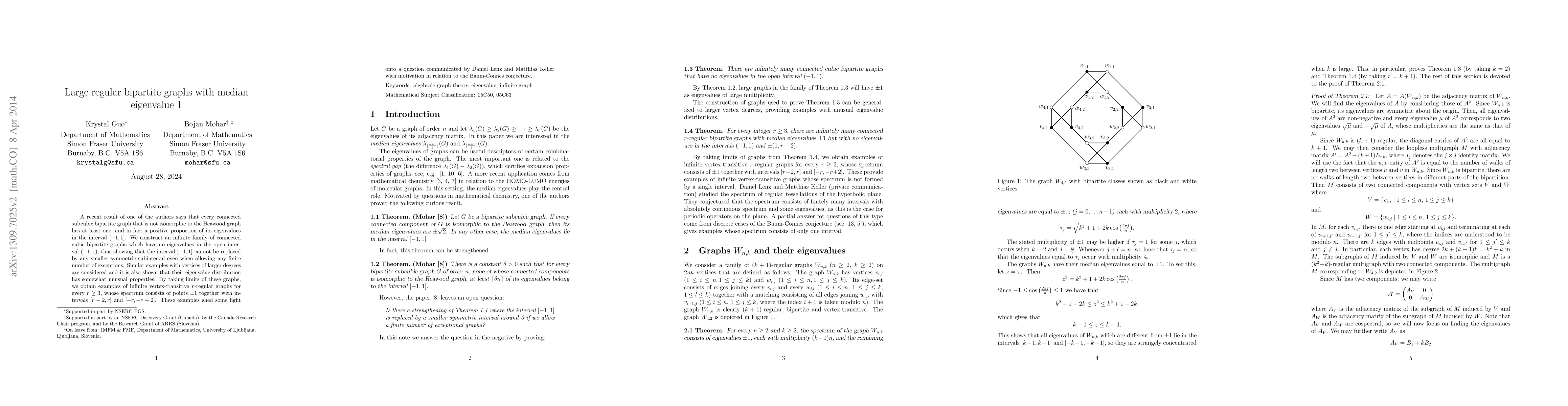 The paper presents an infinite family of cubic bipartite graphs with specific eigenvalue distributions and extends the understanding of infinite vertex-transitive r-regular graphs' spectra.