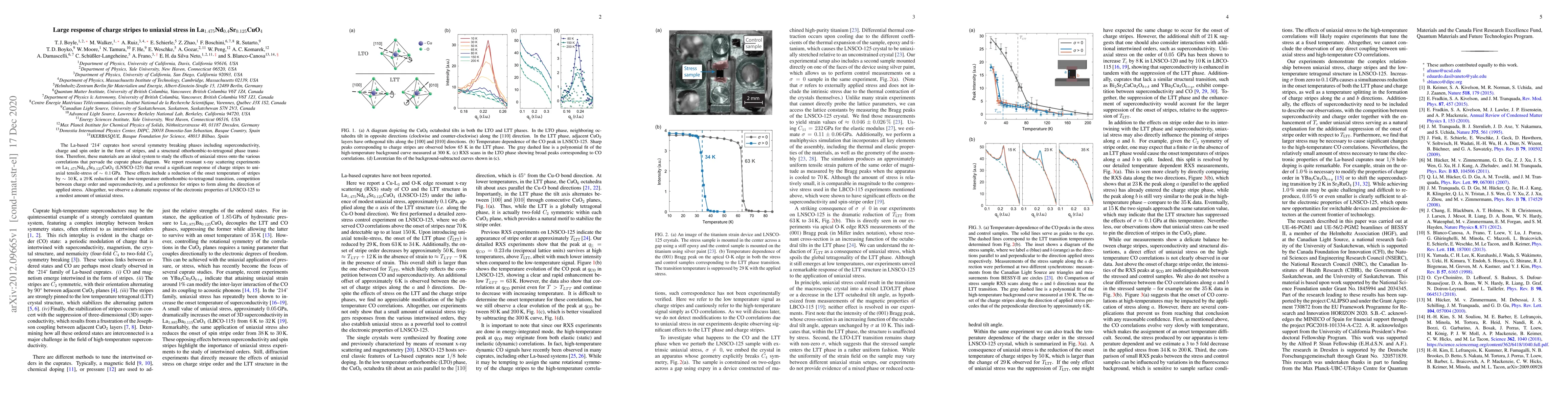 This study reveals that uniaxial tensile stress of approximately 0.1 GPa significantly alters charge stripes in La-based LNSCO-125 cuprates, including a 50 K reduction in the onset temperature of stripes and a 29 K decrease in the orthorhombic-to-tetragonal transition, indicating a strong interaction between stress and electronic properties.