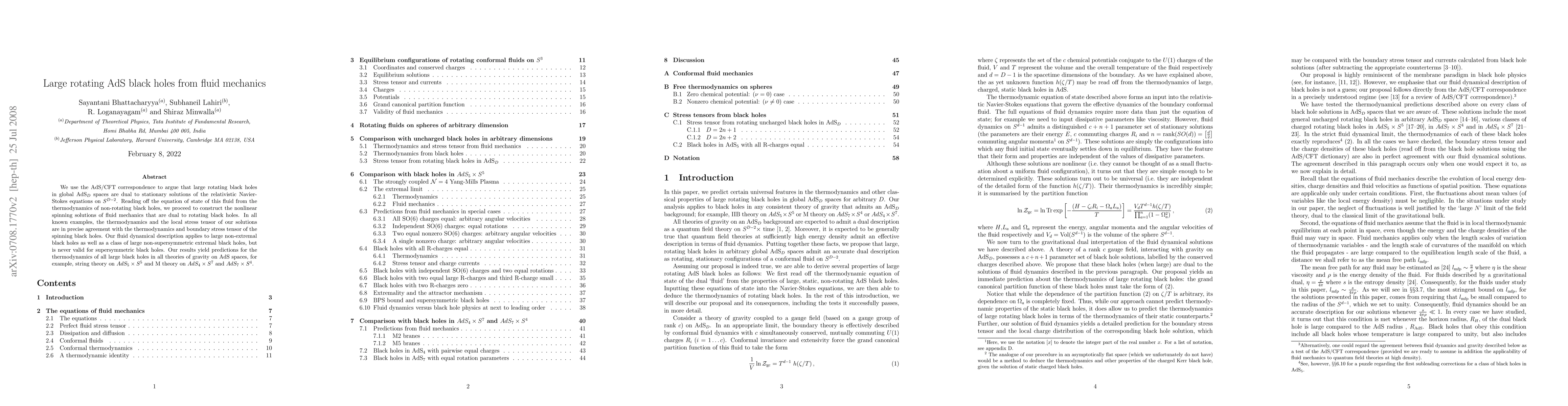 This research employs the AdS/CFT correspondence to link large rotating black holes in AdS spaces to relativistic Navier-Stokes fluid dynamics, demonstrating precise agreement between the thermodynamic properties of the black holes and their fluid mechanical duals, with applicability limited to non-supersymmetric black holes.